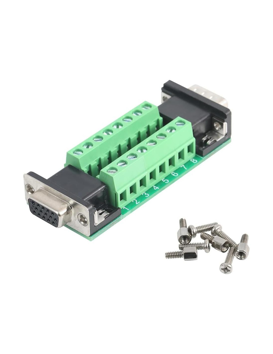- Flexibilidad: El bloque de terminal es más fácil que soldar cables a un conector. Se puede usar para propósitos de prueba y verificar pinouts, cables o cualquier dispositivo con interfaz VGA.