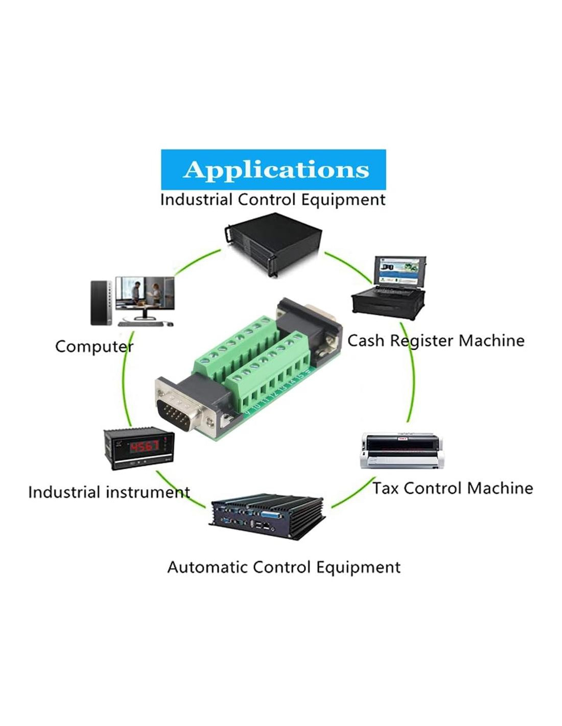 El bloque de terminal es más fácil que soldar cables a un conector. Se puede usar para propósitos de prueba y verificar pinouts, cables o cualquier dispositivo con interfaz RS232.