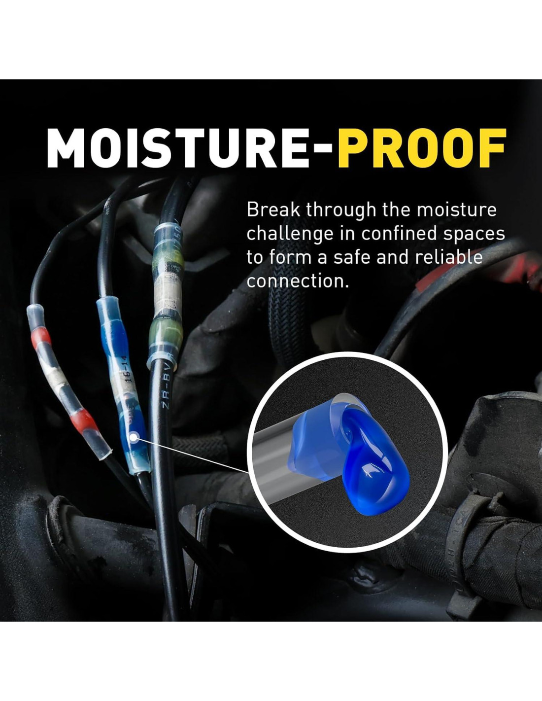 - Con suficiente soldadura envolviendo el cable para derretirse y fluir, los conectores de cable de grado marino forman un sello, lo que asegura conexiones duraderas, especialmente para conexiones más grandes.