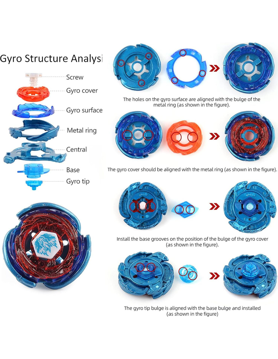 - [Material de Alta Calidad] - metal y plástico. Puedes sentir la diversión de pelear en el juego. El anillo de energía metálico se vuelve más estable durante la rotación y no es fácil de descomponer debido a ningún impacto. Tienen diferentes diseños y habilidades. Te traen la alegría de luchar contra tus oponentes.