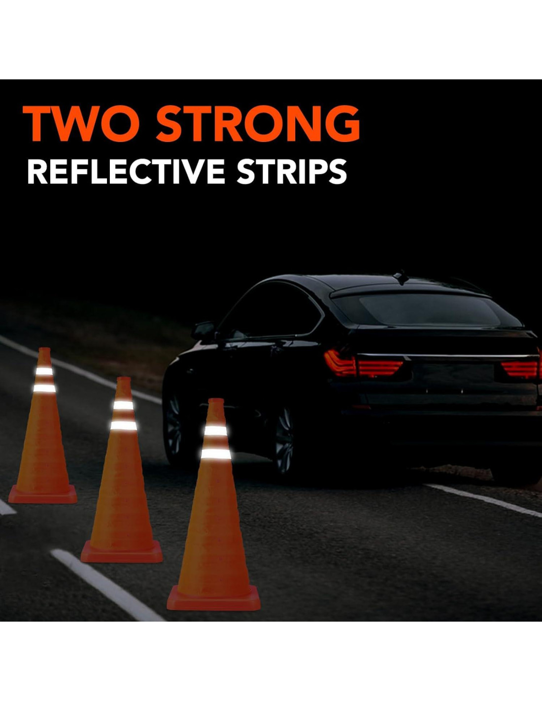 - Almacenamiento Plegable: Los Conos de Seguridad de Tráfico tienen un diseño plegable, que se puede almacenar fácilmente y ocupa poco espacio. Se puede desplegar cuando se usa y almacenar cuando no se usa. El tamaño de 71 cm del cono de carretera se puede plegar fácilmente a solo 4 cm de altura para un almacenamiento conveniente.