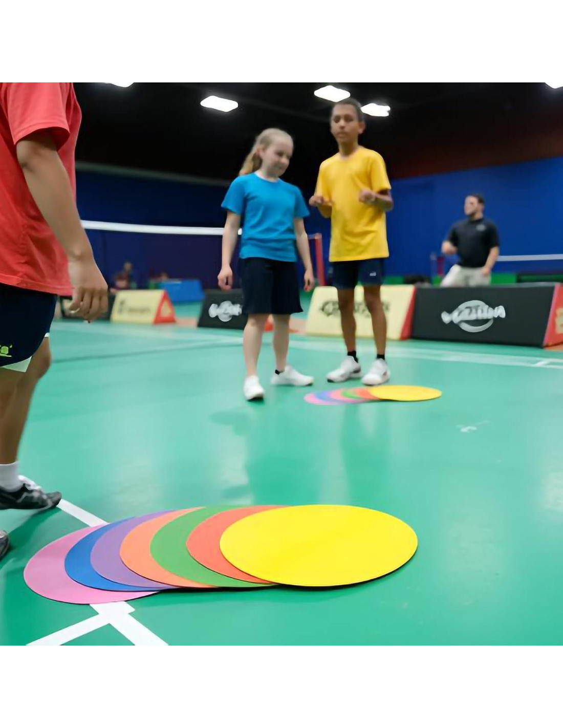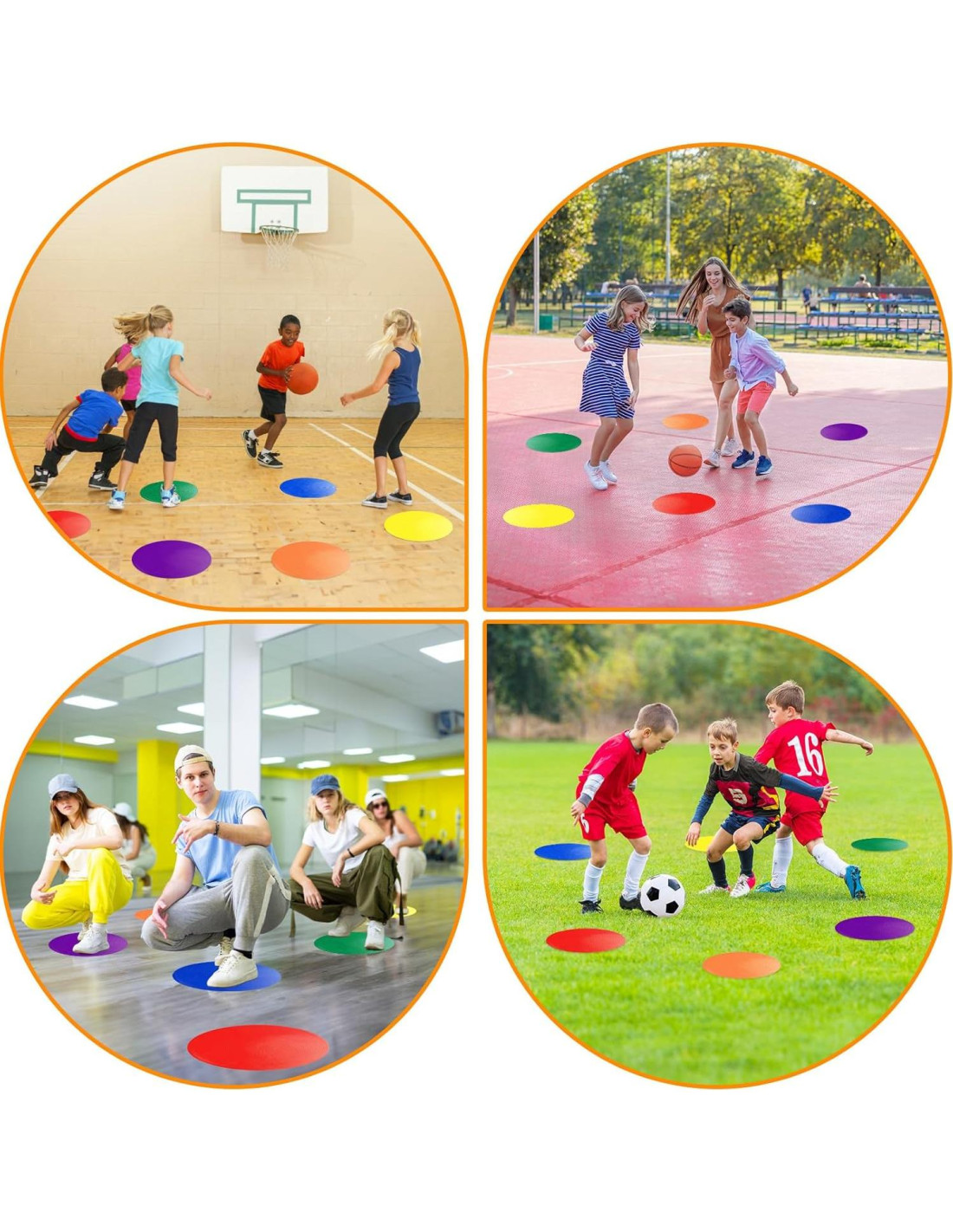 El conjunto de marcadores de puntos está diseñado exactamente para una visibilidad óptima. Con marcadores de 9 pulgadas (22.86 cm) en 6 colores brillantes diferentes: rojo, amarillo, naranja, verde, azul y púrpura. Cada marcador de punto tiene un diámetro de 9 pulgadas (22.86 cm) y es el tamaño perfecto para una variedad de juegos en clase de educación física o ejercicios de agilidad al practicar fútbol, hockey, baloncesto, fútbol americano y otros deportes. Lo cual es una gran alternativa a los marcadores de cono tradicionales. El marcador de punto puede lograr una rápida mejora y un avance de habilidades personales. El conjunto de marcadores de puntos está diseñado para jugadores que corren sobre él, y seguro que resistirá el uso en interiores o exteriores en una variedad de condiciones. El material TPE hace que estos marcadores de puntos tengan un diseño resistente a desgarros, asegurando una larga vida, suave y seguro, duradero y de larga duración, adecuado para su uso en cualquier superficie interior y exterior. Estos son grandes equipos de entrenamiento para entrenadores y familias. Los marcadores se mantendrán firmemente en el suelo y no se rasgarán ni romperán. Hecho de material de goma de alta calidad, muy suave, resistente y seguro para el uso de los niños. Se puede doblar y no dejará arrugas. Puntos antideslizantes en la parte posterior. Adecuado para su uso en superficies interiores y exteriores, especialmente perfecto para el suelo del gimnasio. El material de goma hace que estos marcadores de suelo tengan un diseño resistente a desgarros, asegurando una larga vida, duradero y de larga duración.