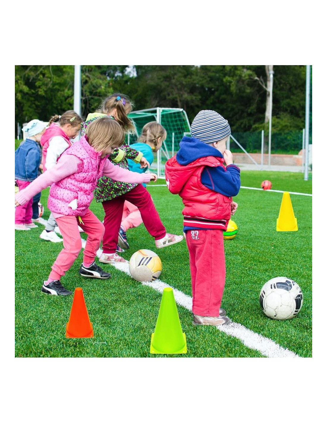- Entrenamiento de Agilidad: Los conos de fútbol se pueden usar para marcadores de línea lateral, marcadores de límite, ejercicios de agilidad de velocidad, baloncesto, obstáculos, objetivos y muchas otras actividades de entrenamiento. Agrega estos conos a tu bolsa de equipo de entrenamiento físico y equipo de entrenamiento de velocidad para asegurarte de obtener la práctica que necesitas.