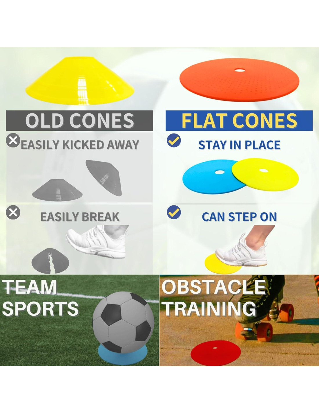 - [Diversas Usos para Actividades en Interiores y Exteriores] : Los conos planos están disponibles en diversas situaciones, como entrenamiento de agilidad de velocidad, deportes en equipo, fútbol, baloncesto, gimnasio, aula, parque infantil, fiesta y juegos infantiles.