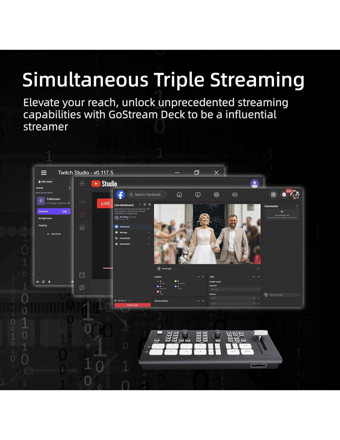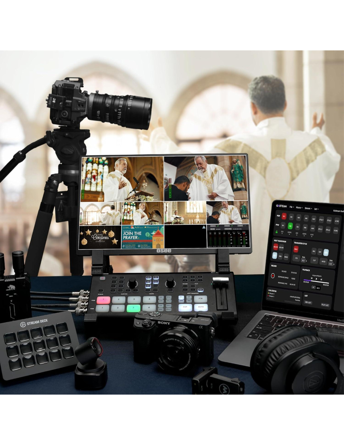 - Ultimate y Ricos Puertos de Conexión Osee GoStream Deck Pro viene con 4 entradas HMDI y 2 salidas HDMI para conectarse con cuatro fuentes de medios diferentes y dos monitores o laptops de salida, 2 Type-C in/out para soportar la cámara web, 1 Ethernet para trabajar en transmisión en vivo, 2 Audio in y 1 Audio out para monitorear la calidad de audio o grabar audio. 1 ranura para tarjeta SD para grabar o reproducir archivos de la tarjeta. (Tarjeta SD no incluida)
