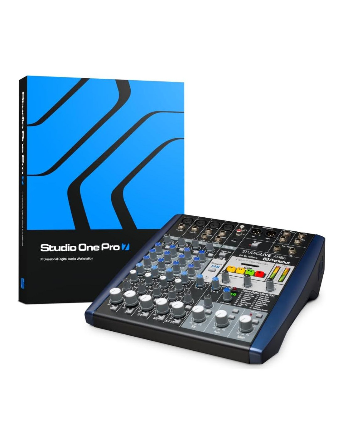 Descripción del Producto Con su diseño de mezclador analógico instantáneamente familiar, el StudioLive AR8c es la forma más fácil de grabar podcasts, transmisiones en vivo y producciones musicales. Con un frente analógico prístino que cuenta con cuatro preamplificadores de micrófono XMAX de alta ganancia y una interfaz de audio USB 2.0 compatible con USB-C de 8x4, 24 bits, 96 kHz, el diseño híbrido del StudioLive AR8c hace que mezclar y grabar sea simple. Agregue herramientas como un ecualizador analógico musical de 3 bandas, refuerzo de micrófono/línea para fuentes de entrada de bajo nivel y dispositivos de consumo, conectividad Bluetooth, un grabador SD estéreo y entradas de instrumentos de alta impedancia, y tendrá una potencia de transmisión y grabación que satisface las necesidades de los músicos modernos y creadores de contenido. Del Fabricante Interfaz de audio digital de alta definición 8x4, 24 bits/96 kHz, USB 2.0 con un diseño de mezclador analógico intuitivo; conectividad USB-C; cuatro preamplificadores de micrófono XMAX de alta ganancia; grabador digital SD estéreo integrado; el canal estéreo Super ofrece conexiones para cuatro dispositivos a la vez, incluyendo a través de Bluetooth 5.0 inalámbrico, además de entradas de línea estéreo RCA y de 1/8 de pulgada, así como reproducción de computadora/SD; solución de grabación todo en uno con el software de grabación multicanal Studio One Artist y Capture incluidos.