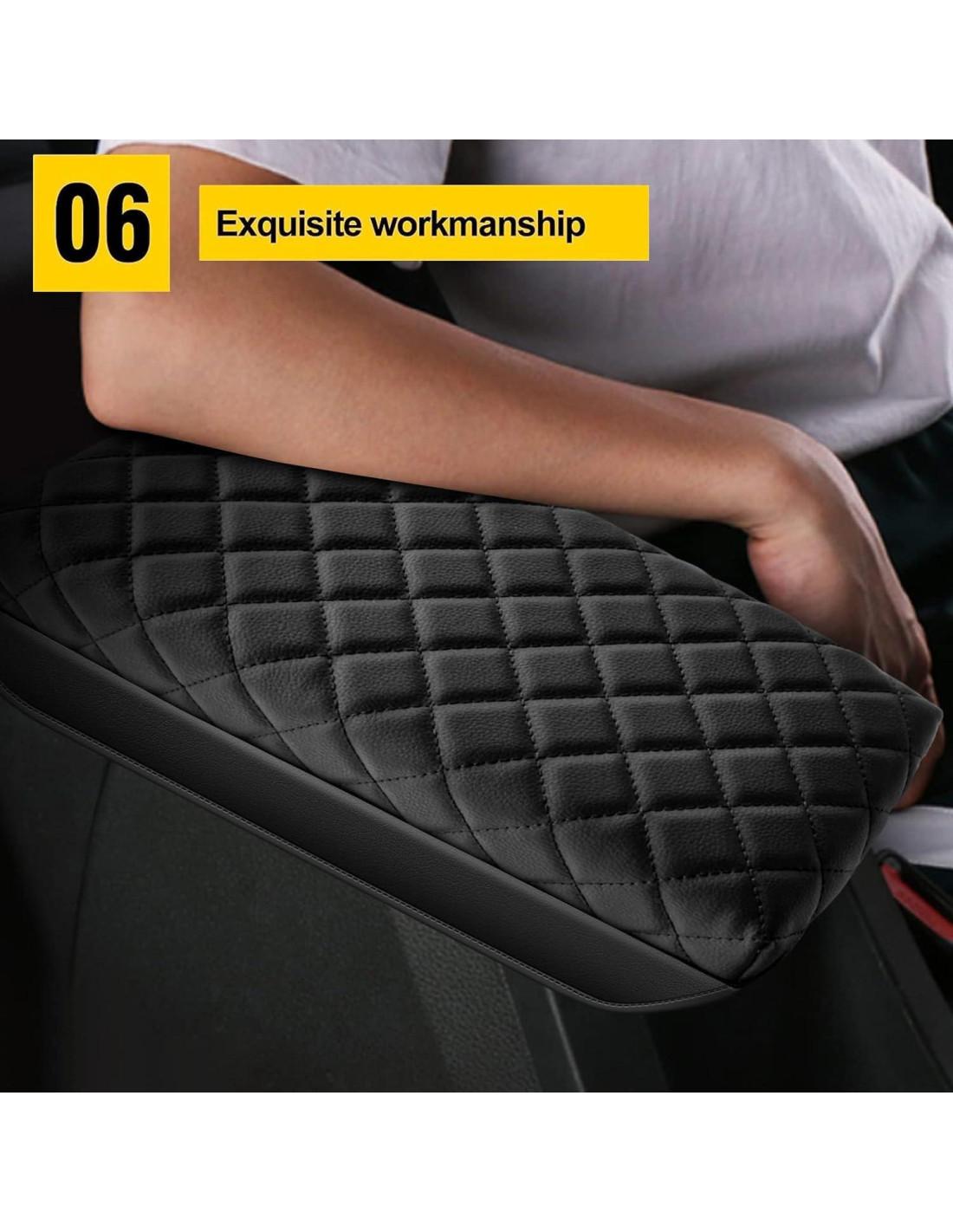 - MATERIAL PREMIUM: Este producto está hecho de cuero sintético de alta calidad, transpirable, impermeable y duradero. La funda del reposabrazos está rellena de espuma viscoelástica en su interior, y el grosor adecuado mantiene tus codos cómodos mientras conduces.