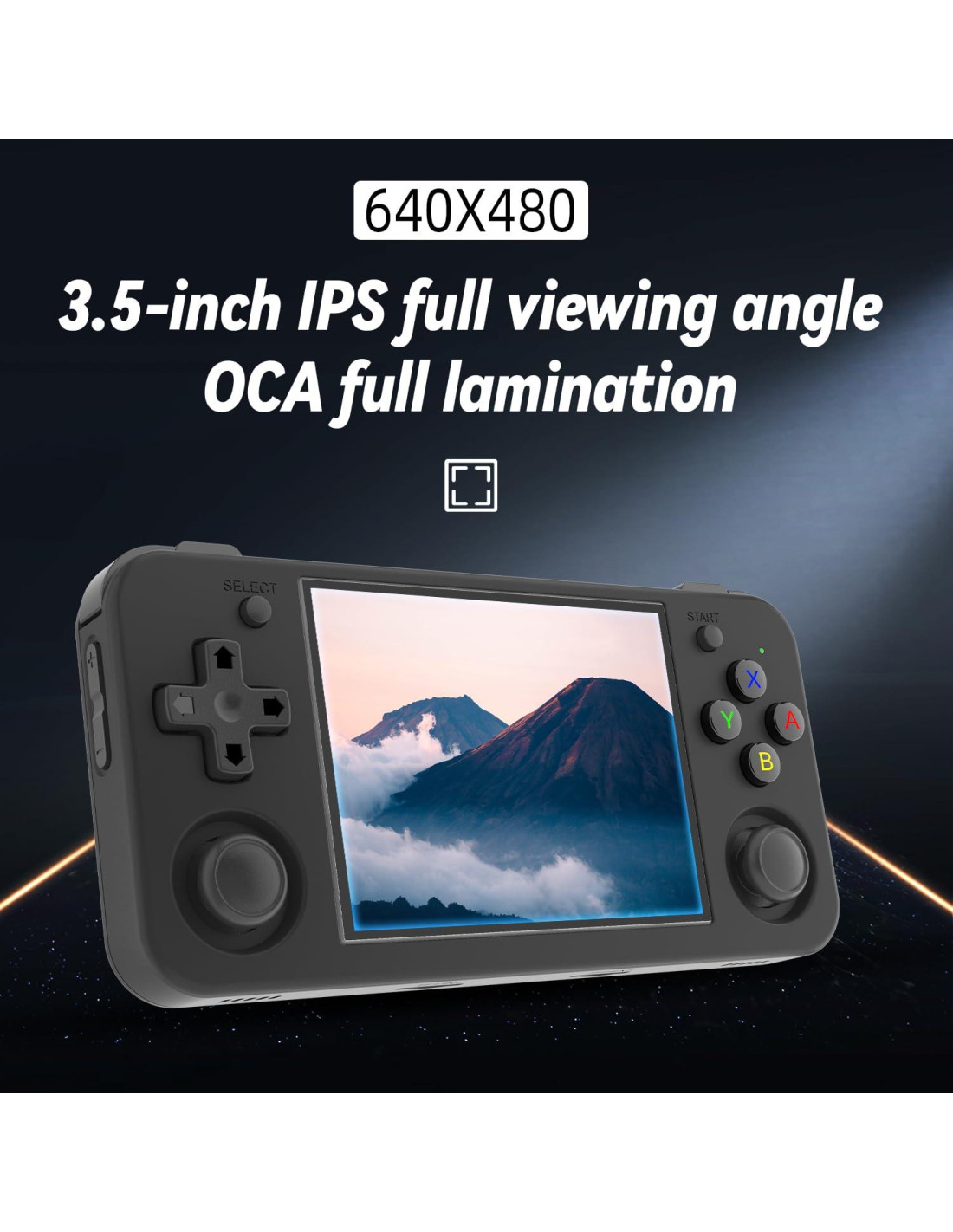 - Pantalla IPS de 3.5 pulgadas. La pantalla IPS de 3.5 pulgadas está completamente laminada con OCA y tiene una resolución de 640*480, brindando a los jugadores una experiencia de juego clara. Además, la pantalla es resistente y no frágil.
