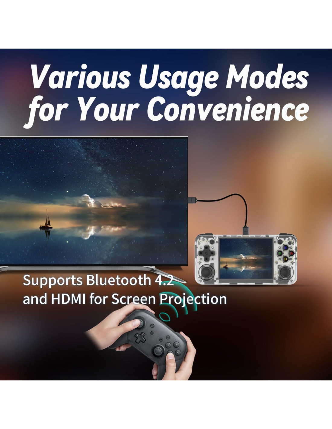 - [Consola de Juegos ANBERNIC RG35XX H con Estilo Linux] RG35XX H viene con una tarjeta TF de 64G precargada con 5570 juegos clásicos, soporta a los usuarios para descargar juegos en 30 formatos de juegos relevantes.
