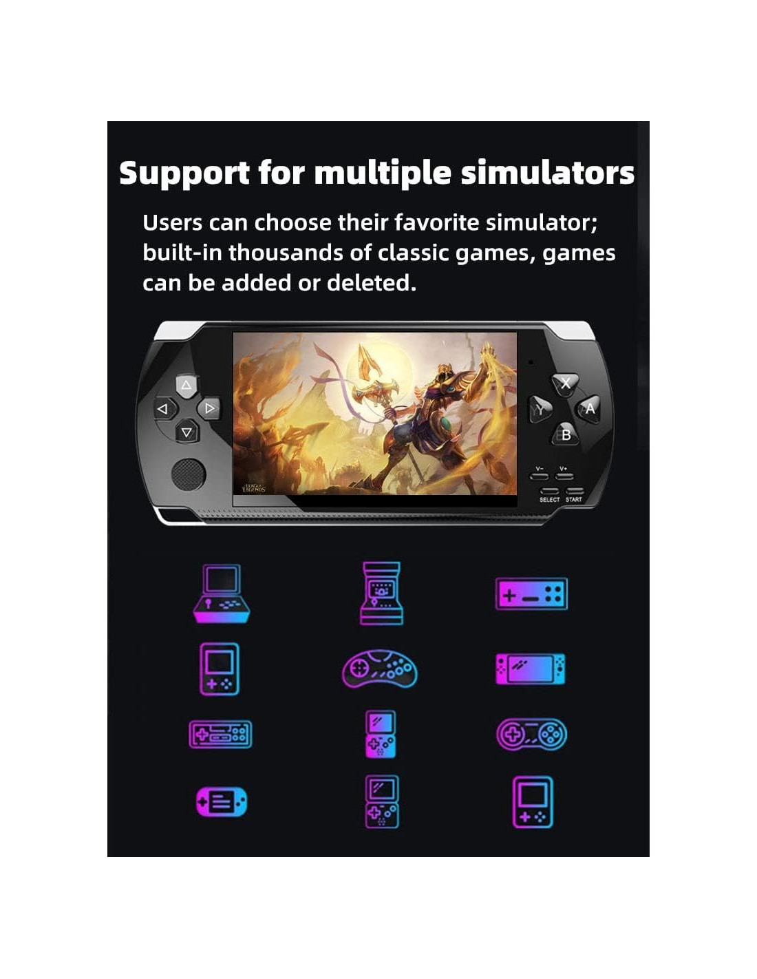 Además de los juegos mostrados en la pantalla, hay muchos más juegos integrados en la consola. Selecciona "Juegos" en la pantalla y presiona la tecla A para entrar, verás diferentes carpetas, después de entrar en la carpeta podrás ver más juegos. Los usuarios también pueden entrar en "Navegador"---"JUEGO" para encontrar más juegos. Conecta la consola de juegos a la computadora, encuentra la carpeta "JUEGO" de la consola de juegos en la computadora, el usuario puede crear otra carpeta en la carpeta "JUEGO", como "mis favoritos", y luego copiar los archivos de juego que te gusten a esta carpeta. La próxima vez podrás encontrar el juego que deseas jugar directamente en esta carpeta. Al jugar el juego, presiona la tecla "SELECCIONAR", el menú del juego aparecerá en la pantalla, entra en "Guardar Juego", selecciona el número de progreso que deseas guardar y luego presiona la tecla A. El juego puede guardar hasta 6 progresos, y los usuarios pueden cargar diferentes progresos para continuar jugando. La consola de juegos se puede conectar a la TV a través de un cable AV, un extremo se conecta a la consola de juegos, y los otros tres conectores se insertan en la TV según los colores, y selecciona la fuente de señal correspondiente en la TV, luego selecciona en la pantalla de la consola de juegos y presiona la tecla A para entrar en "Configuración"---"TV-OUT", selecciona "PAL" o "NTSC" (según el sistema de TV del país del usuario). Conecta la consola de juegos a la computadora, encuentra la carpeta "JUEGO"/"VIDEO"/"MÚSICA"/"TXT" de la consola de juegos en la computadora, copia los archivos de juego/video/música/e-libro a la carpeta correspondiente, y también se pueden eliminar archivos de juego/video/música/e-libro de estas carpetas. Esta consola de juegos no se puede conectar a Internet. Los usuarios pueden navegar por Internet en la computadora, buscar y descargar juegos en Google u otros sitios web. Actualmente, solo se pueden agregar archivos de juego con el sufijo .gba/.gbc/.gb/.nes/.sfc/.bin/.smd, los archivos de juego deben ser copiados a la carpeta ''JUEGO'' en la consola. Si algunos juegos no se pueden abrir, la información del archivo puede estar faltando, puedes eliminarlo y descargarlo nuevamente. Selecciona "Configuración"---"Idioma" en la pantalla y presiona la tecla A para entrar, verás múltiples idiomas, selecciona el idioma que deseas, presiona la tecla A para confirmar. Nota especial: Solo se puede configurar el idioma del menú de la consola de juegos, y el idioma en el juego no se puede configurar. Después de configurar el idioma, debes presionar la tecla "INICIAR" para apagar la máquina por primera vez, de lo contrario, la configuración del idioma no se guardará. ¿Se pueden eliminar o reemplazar los juegos de escritorio en la pantalla? Los juegos de escritorio en la pantalla están solidificados en el programa y no se pueden eliminar ni reemplazar. ¿Cómo hacer una copia de seguridad de los archivos de juego? Conecta la consola de juegos a la computadora, y encuentra la carpeta "JUEGO" de la consola de juegos en la computadora. Recomendamos encarecidamente que los usuarios copien la carpeta "JUEGO" a la computadora para prevenir la pérdida de archivos de juego. Los usuarios también pueden eliminar juegos no deseados para que la consola funcione más rápido. ¿Cómo entrar/pausar/salir del juego? Después de seleccionar el juego, presiona el botón A, luego presiona el botón INICIAR. Diferentes juegos necesitan presionar el botón A o el botón INICIAR varias veces. Al jugar el juego, presiona la tecla INICIAR para pausar el juego; presiona la tecla SELECCIONAR y selecciona "Salir" en el menú para salir del juego. Instrucciones de carga: Se recomienda usar un cargador que no exceda 5V2A para cargar. La luz indicadora parpadeará mientras se carga, y se volverá azul cuando esté completamente cargado. Si encuentras que no se puede cargar, por favor reemplaza el cargador o el cable de carga.