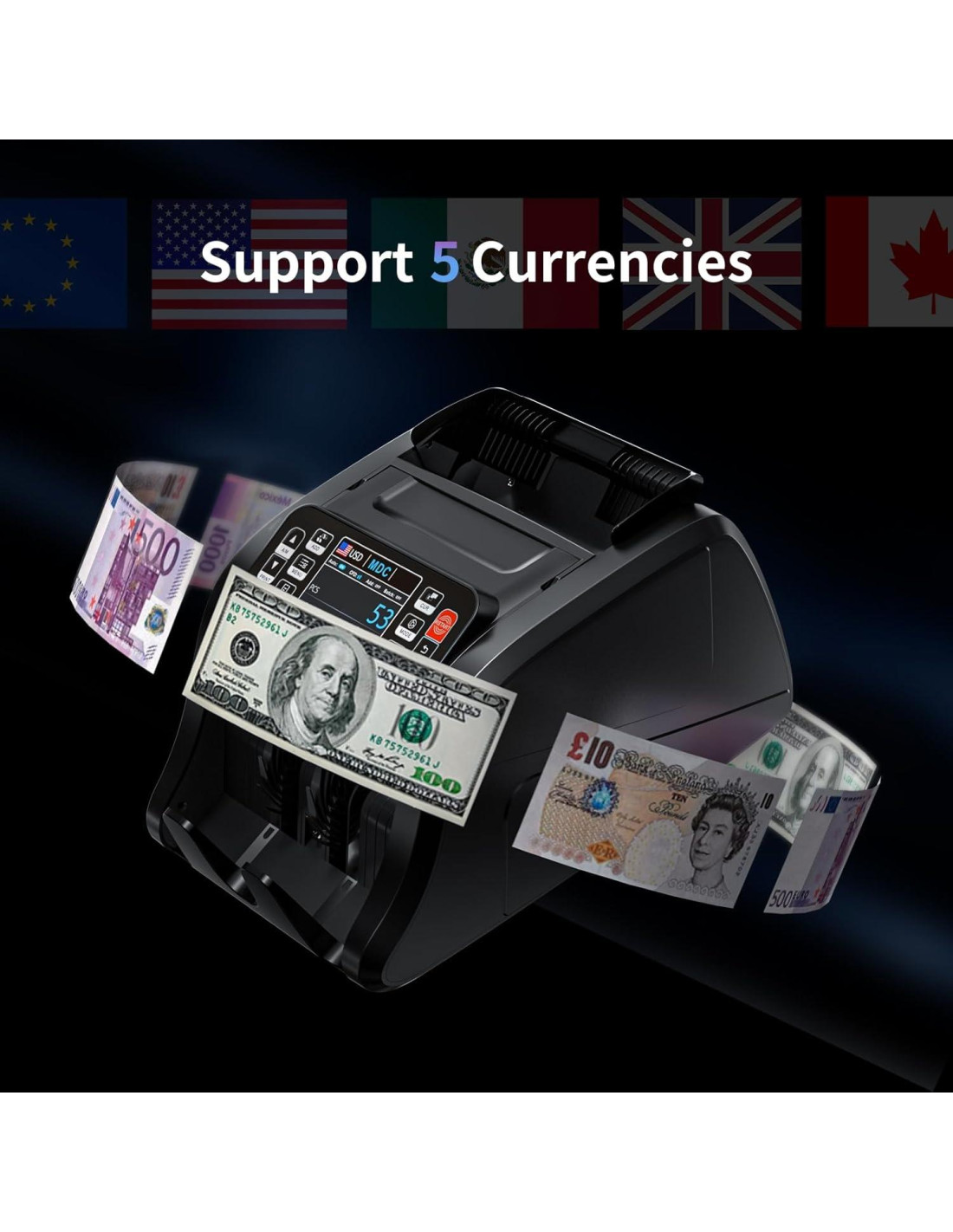 - EFICAZ Y PRECISO: La Máquina Contadora de Dinero de Denominación Mixta puede contar más de 1200 billetes/min de manera fluida, rápida y precisa con bajo ruido. La gran capacidad de la tolva puede contener 200 billetes, satisfaciendo la demanda máxima de diversas ocasiones.