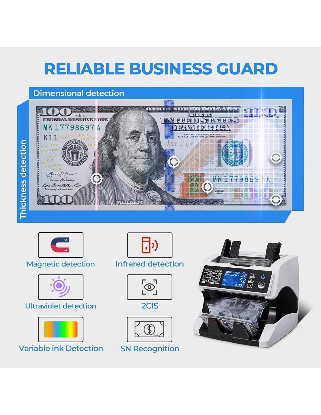 - Gran Ahorro de Tiempo: La máquina contadora de dinero de denominación mixta aumenta tu eficiencia en el trabajo de conteo de efectivo con las siguientes funciones: Denominación mixta, clasificación manual basada en la primera denominación o moneda, AÑADIR, LOTE, AÑADIR & LOTE, conteo automático/manual. Ideal para pequeñas empresas o bancos para manejar trabajos de conteo de efectivo pesados. Soporta conteo de valor en múltiples monedas, como USD/MXN/CAD/EUR/COP/LBP/ILS/etc. Más de 120 monedas están disponibles a través de actualizaciones.