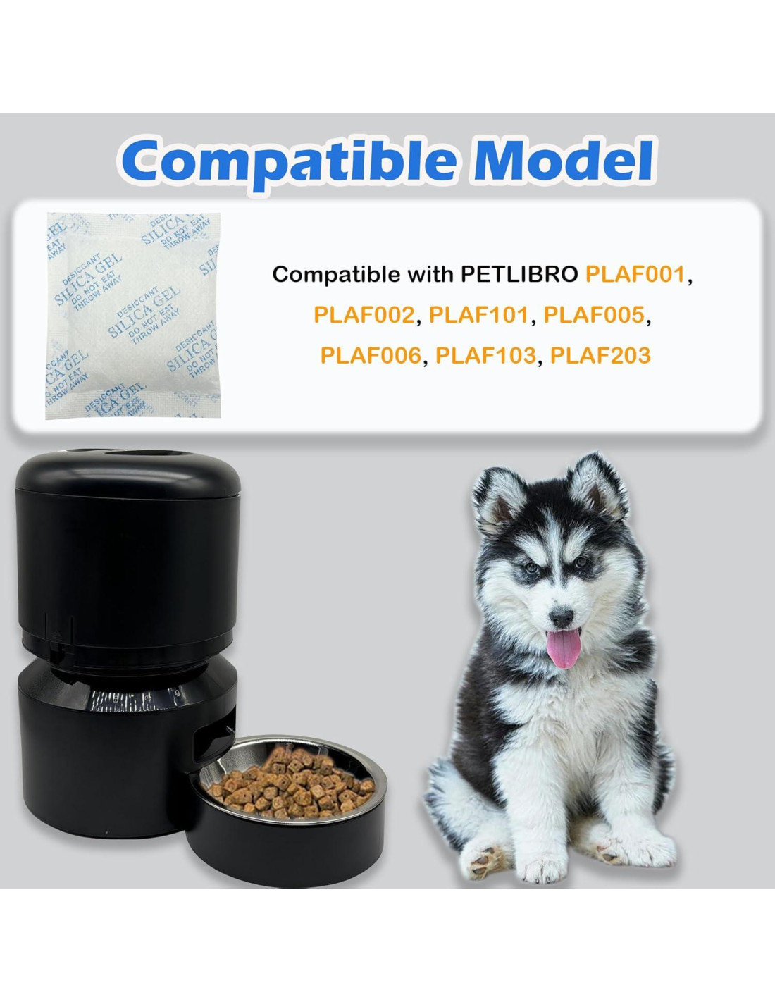 Compatible con PETLIBRO PLAF001, PLAF002, PLAF101, PLAF005, PLAF006, PLAF103, PLAF203; recibirás 12 bolsas deshidratantes envueltas individualmente; recomendamos cambiar el deshidratante cada medio mes, lo que proporcionará 6 meses de deshidratante para tu comedero para mascotas
