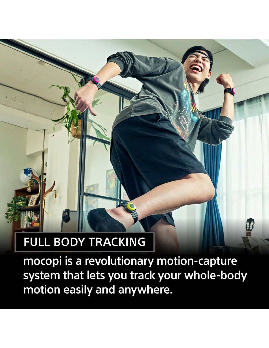 - CAPTURA DE MOVIMIENTO PORTÁTIL: Con mocopi, puedes capturar tu movimiento 3D de cuerpo completo donde quieras con seis sensores cómodos y ligeros. Además, dos bandas de extensión para priorizar el seguimiento del cuerpo superior o inferior.