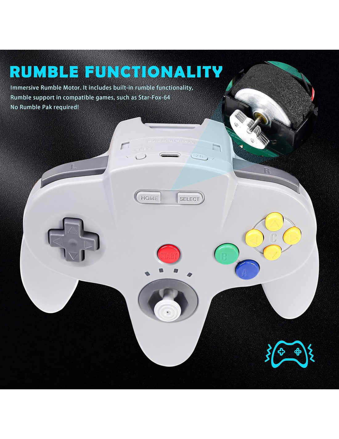 - Compatibilidad con Múltiples Dispositivos: Incluye un receptor USB que funciona con Windows PC, Mac, Raspberry Pi, Switch y NSO. La vibración incorporada elimina la necesidad de un Rumble Pak adicional.