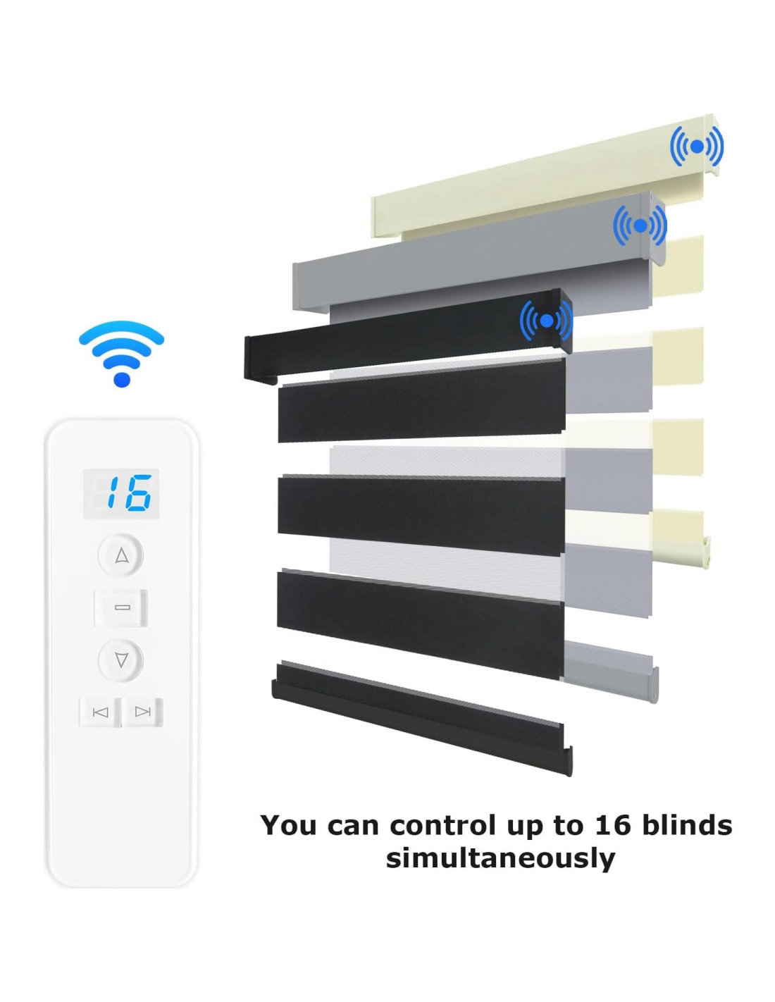 - Tipo de control remoto: Proporcionamos cuatro tipos de controles remotos: control remoto de 1 canal, 2 canales, 6 canales y 16 canales. Un canal controla una persiana, y el canal "cc" puede controlar todas las persianas con un clic. Puede elegir el control remoto apropiado según el número de persianas en la habitación.