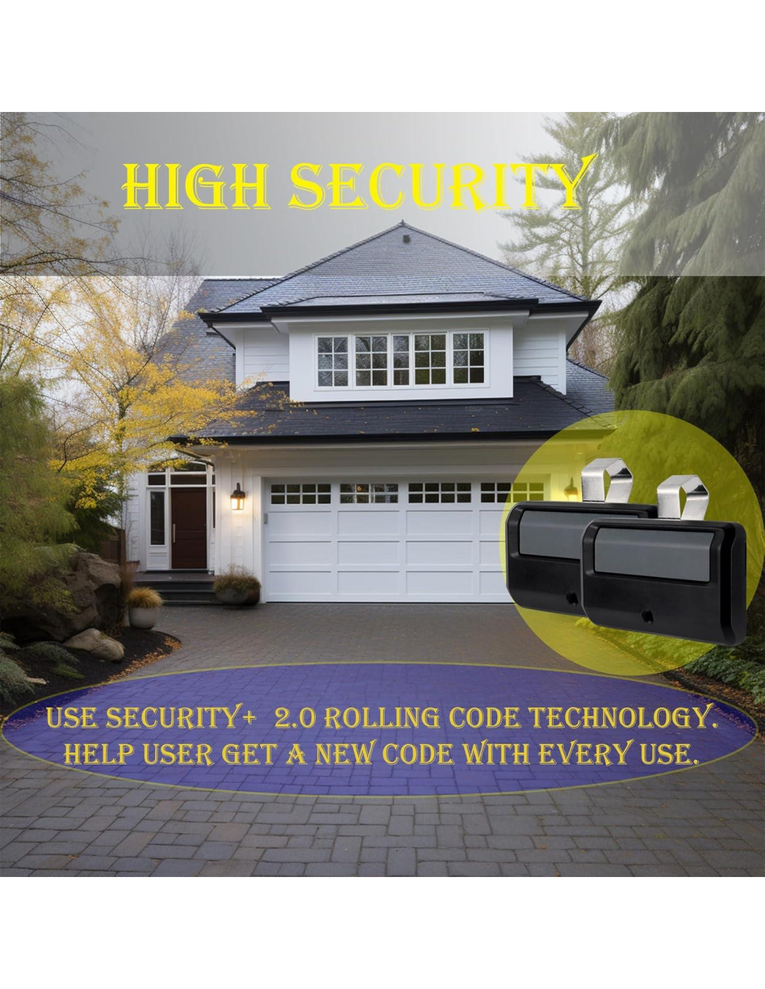 El control remoto del abridor de puerta de garaje amarillo utiliza tecnología de código rodante security+ 2.0 y tecnología Billion Code, que ayuda al usuario a obtener un nuevo código con cada uso. Por favor, verifique que su abridor de puerta de garaje tenga un botón de aprendizaje amarillo.