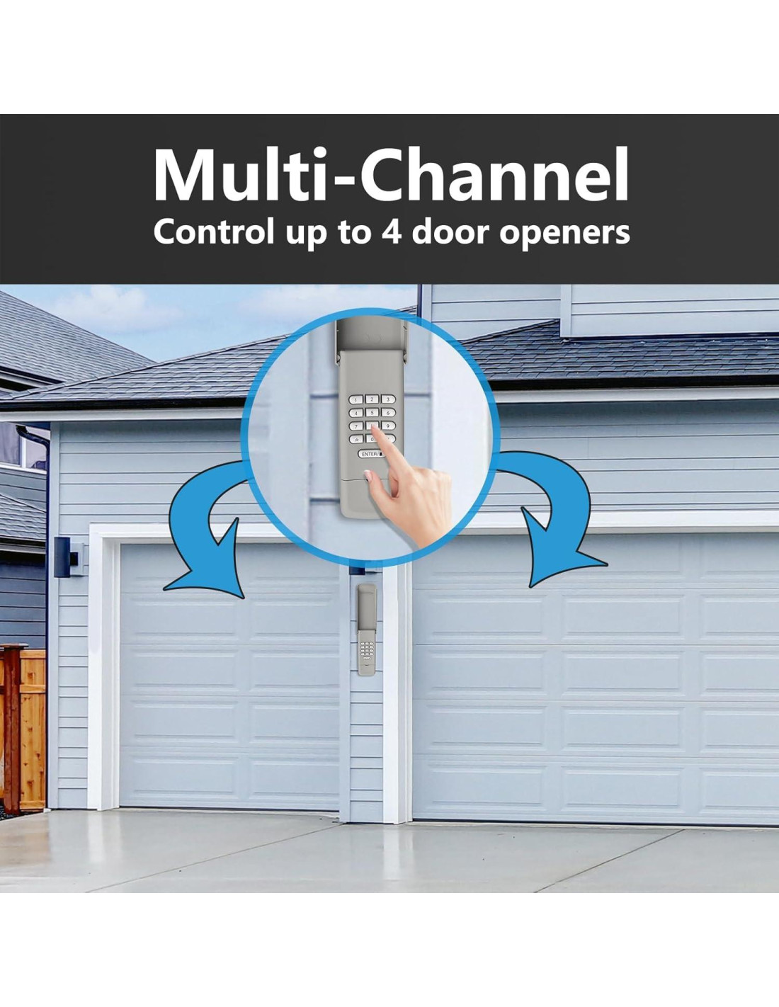 - [Programación Fácil] - Con este teclado para puerta de garaje, programar es muy fácil. En solo minutos, puede establecer un PIN de 4 dígitos para emparejarlo con su abridor de puerta de garaje utilizando el botón de aprendizaje o el interruptor dip. Una vez que lo haya hecho, simplemente ingrese el PIN de 4 dígitos para abrir su puerta de garaje, ¡sin necesidad de preocuparse por olvidar sus llaves! Puede modificar el PIN en cualquier momento. Capacidad para establecer un PIN temporal para vecinos o trabajadores de servicio que se puede eliminar fácilmente. Puede establecer los tiempos del PIN temporal.