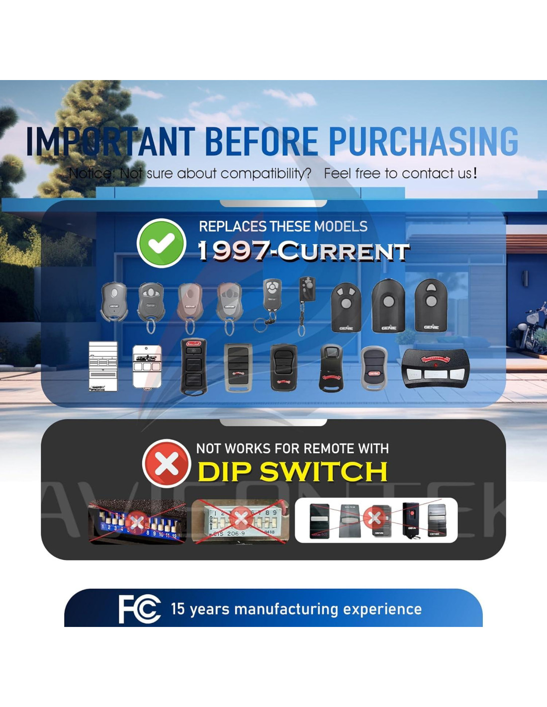 - **Amplia Compatibilidad**: Compatible con el Abridor de Puerta de Garaje Intellicode Genie de 1997 a Actualidad. [Nota: NO Soporta Abridor de Interruptor Dip] Reemplazo para G3T-BX G3T-R G3T-A G1T-BX G1T-A O1T-BX O1T-A GITR-3 GIT-1 GIT-2 GIT-3 O3T-BX OCDTR-3 OCDT-1 OCDT-2 OCDT-3.