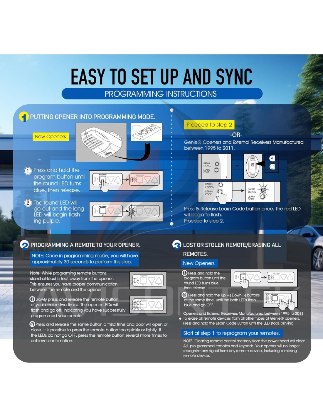 - **Proceso de Emparejamiento Sin Esfuerzo**: Sin Costuras y Rápido Disfrute de una experiencia de emparejamiento sin complicaciones con los motores de puertas de garaje, mientras su diseño ergonómico asegura un ajuste perfecto en los visores de sol del automóvil para una máxima conveniencia.