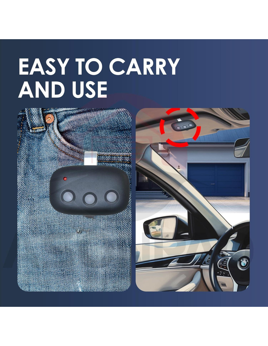 - **Conveniente y Amigable para el Usuario**: El control remoto de abridor de puerta de garaje cuenta con un rango de control de 50 metros (164 pies) y se puede emparejar fácilmente con el motor de tu puerta de garaje. Su diseño compacto permite guardarlo convenientemente en la visera del sol de tu coche.