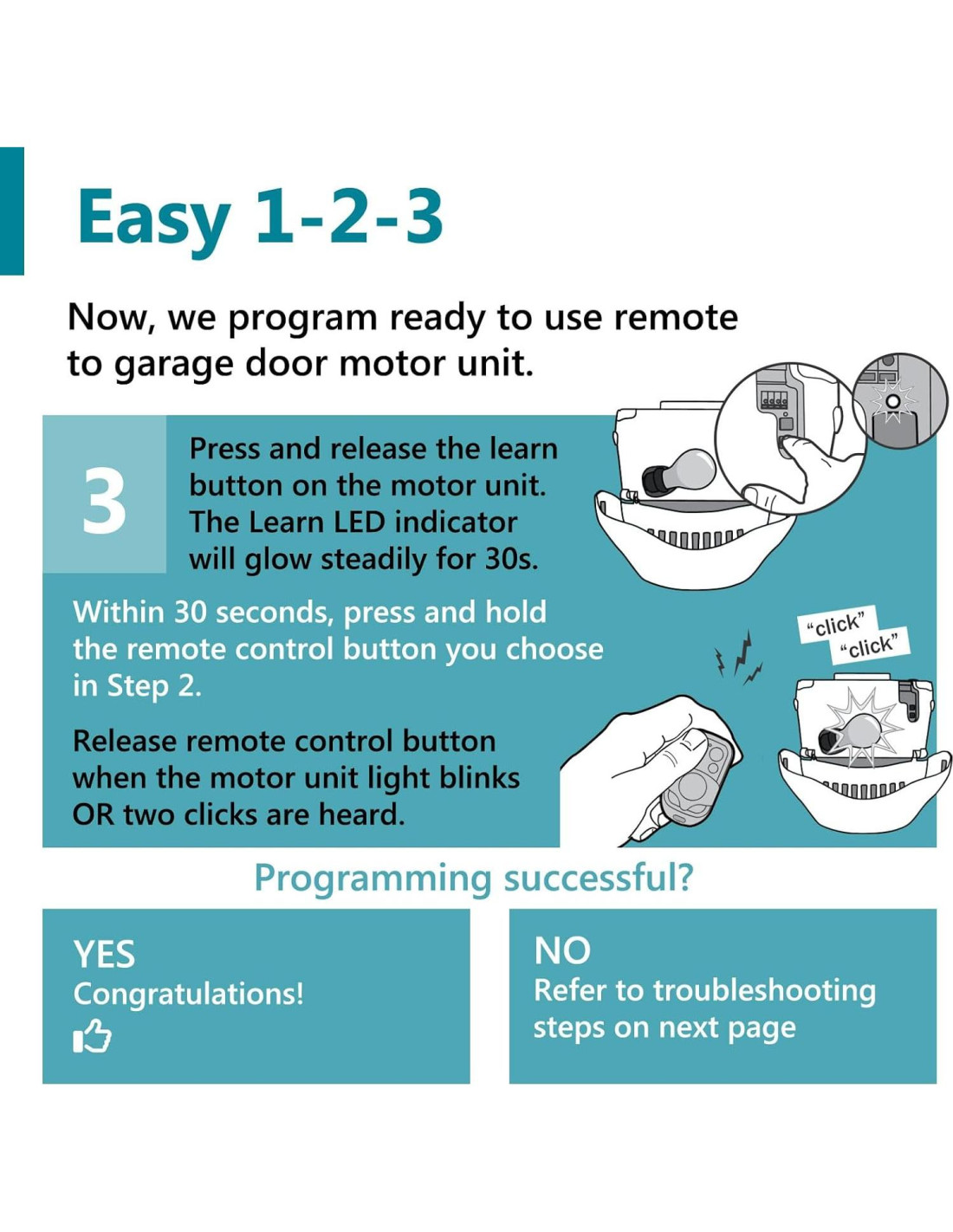 - SOLO funciona con abridores LiftMaster, Chamberlain, Sears Craftsman de 1993 a la actualidad con botón inteligente/aprendiz morado, rojo/naranja, amarillo, verde en la cabeza de potencia (por favor verifica las fotos de la lista antes de comprar)