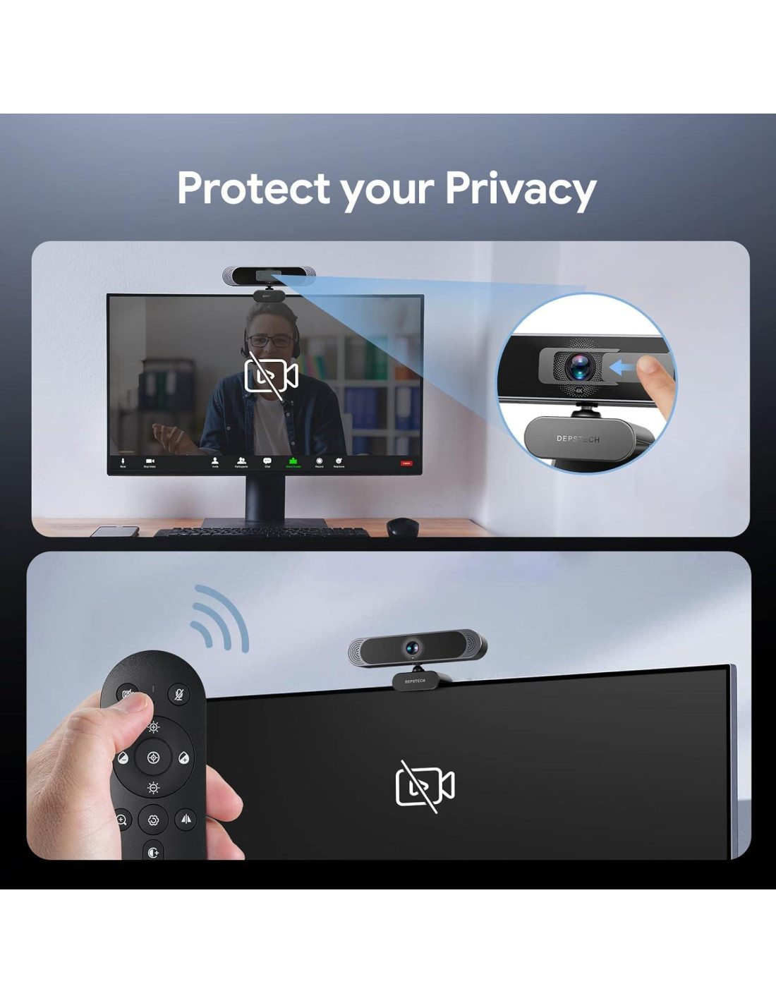 - Micrófonos Duales con Cancelación de Ruido, la cámara web DEPSTECH DW49 Pro con micrófono mejora enormemente la calidad del sonido de tus videos en vivo o llamadas en línea, manteniendo una salida de audio de alta calidad incluso en entornos ruidosos. Es perfecta para enseñanza en línea, conferencias de video, streaming de juegos, llamadas de video.
