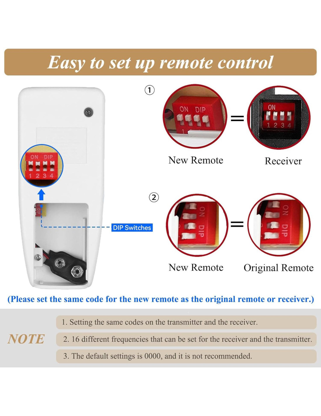 - Por Favor TENGA EN CUENTA --- Este control remoto FAN-53T solo puede reemplazar el control remoto con interruptores DIP. Si tu control remoto original se ve igual que la imagen mostrada, y es de tipo de aprendizaje, entonces nuestro control remoto no puede ser reemplazado. Además, el grosor de nuestro control remoto es 2.5cm/0.98'', si tu control remoto original es más delgado que esto, nuestro control remoto FAN-53T no puede reemplazar el tuyo.