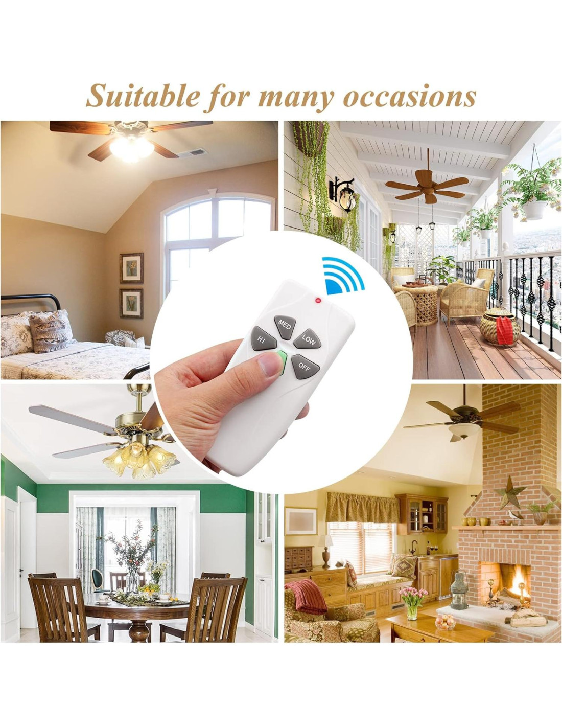 - Control Remoto para Ventilador de Techo Harbor Breeze --- Este control remoto está diseñado para ventiladores de techo de 3 velocidades para controlar por separado la velocidad de tu ventilador de techo y el brillo de la luz. Hay cuatro botones (HI, MED, LOW, OFF) para controlar la velocidad del ventilador y apagarlo.