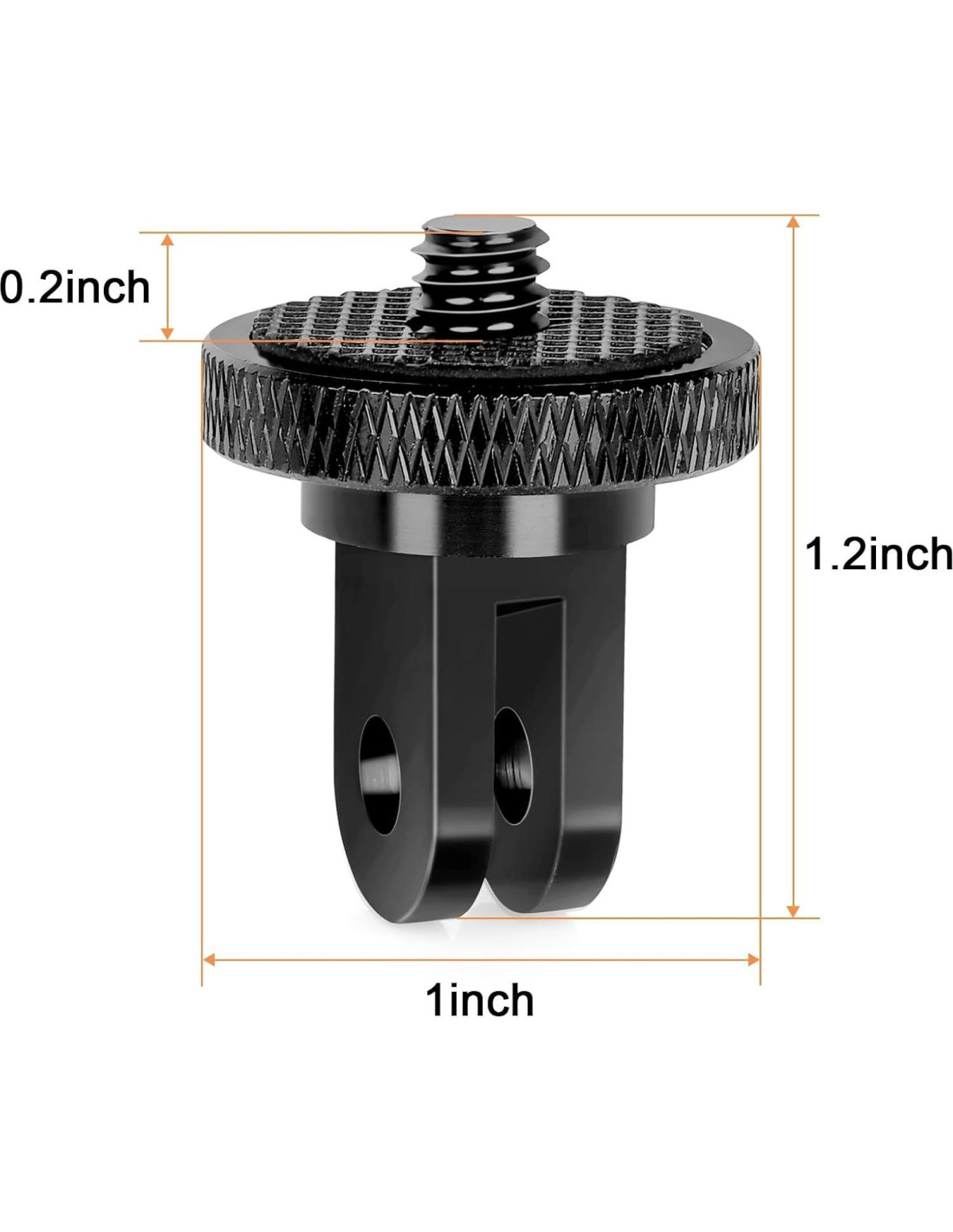 - Adaptador de Trípode Versátil- meticulosamente diseñado para acomodar cámaras con rosca estándar 1/4"-20 para una conexión sin problemas a GoPro Hero Session, cámaras de acción, trípodes, manillares de bicicletas y varios accesorios.