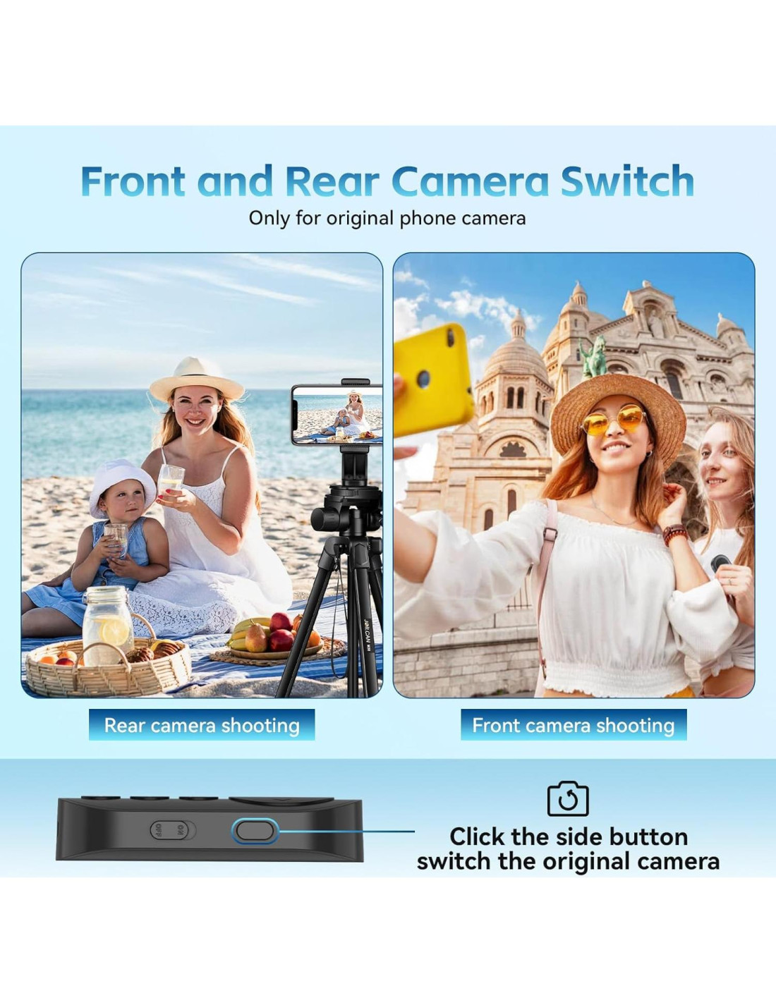- Captura Toma Perfectas Sin Manos: Controla sin esfuerzo la cámara de tu teléfono, cambia entre lentes frontales/traseros y haz zoom para fotos y videos de nivel profesional. Estos puntos necesitan atención: La función de zoom es solo para la cámara trasera original del Smartphone. Y la cámara frontal no tiene función de zoom. (No funciona con iPad ni ningún tipo de tablet)