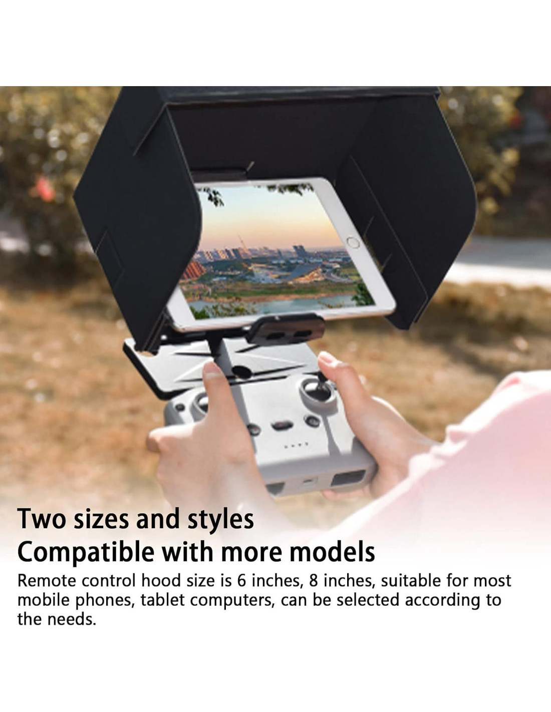 Adecuado para: El tamaño de la cubierta del control remoto es 15.24cm (6.0in), 20.32cm (8.0in), adecuado para la mayoría de los teléfonos móviles y tabletas, y se puede seleccionar según las necesidades. Para Deslumbramiento: Previene eficazmente el deslumbramiento y la interferencia bajo luz exterior intensa, reduce la incomodidad ocular y mejora la seguridad en el vuelo. Sin Aumento de Carga: No afecta el uso de las teclas del control remoto y los cables de datos, y no aumenta la carga de vuelo. Característica: 1. Previene eficazmente el deslumbramiento y la interferencia bajo luz exterior intensa, reduce la incomodidad ocular y mejora la seguridad en el vuelo. 2. diseño envolvente, no bloquea la imagen de la pantalla, el espacio de la sombrilla es grande y no afecta la pantalla de visualización del vuelo. 3. instalación adhesiva, firme y fácil de instalar. 4. No afecta el uso de las teclas del control remoto y los cables de datos, y no añade carga adicional al vuelo. 5. El tamaño de la sombrilla del control remoto es 15.24cm (6.0in), 20.32cm (8.0in), adecuado para la mayoría de los teléfonos móviles, tabletas, se puede seleccionar según las necesidades. Especificación: Tipo de artículo: Sombrero Solar Sombrilla Material: Cuero Aplicable: para Control Remoto de Mavic Air 2/Air 2S/Mini 2 Lista de Paquete: 1 x Sombrero Solar Sombrilla Nota: 1. Por favor, permita un error de 0-1 pulgada debido a la medición manual. Gracias por su comprensión. 2. Los monitores no están calibrados de la misma manera, el color del artículo mostrado en las fotos puede ser ligeramente diferente del objeto real. Por favor, tome el real como estándar.