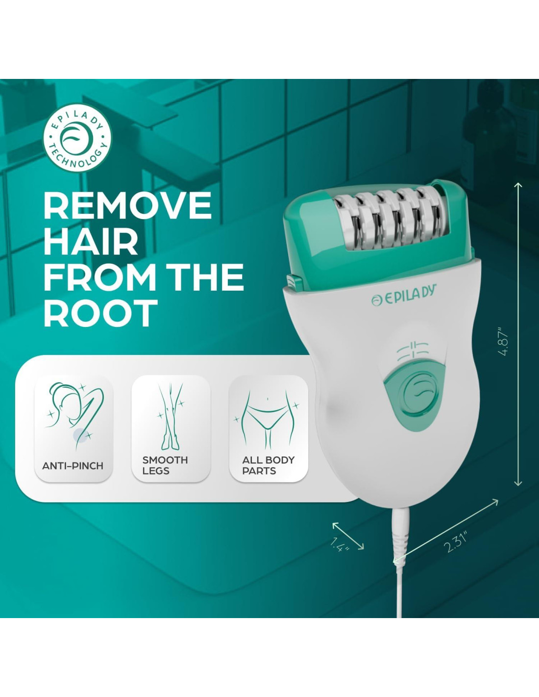 - EPILADOR DE ELIMINACIÓN DE VELLO PARA MUJERES: El Epilady Speed Epilador con Cable para Mujeres elimina el vello desde la raíz, asegurando una piel suave y sedosa que dura de 4 a 6 semanas después de su uso. Este dispositivo está equipado con un cable de alimentación, un cepillo de limpieza, 2 modos de velocidad y una guía de recorte en ángulo.