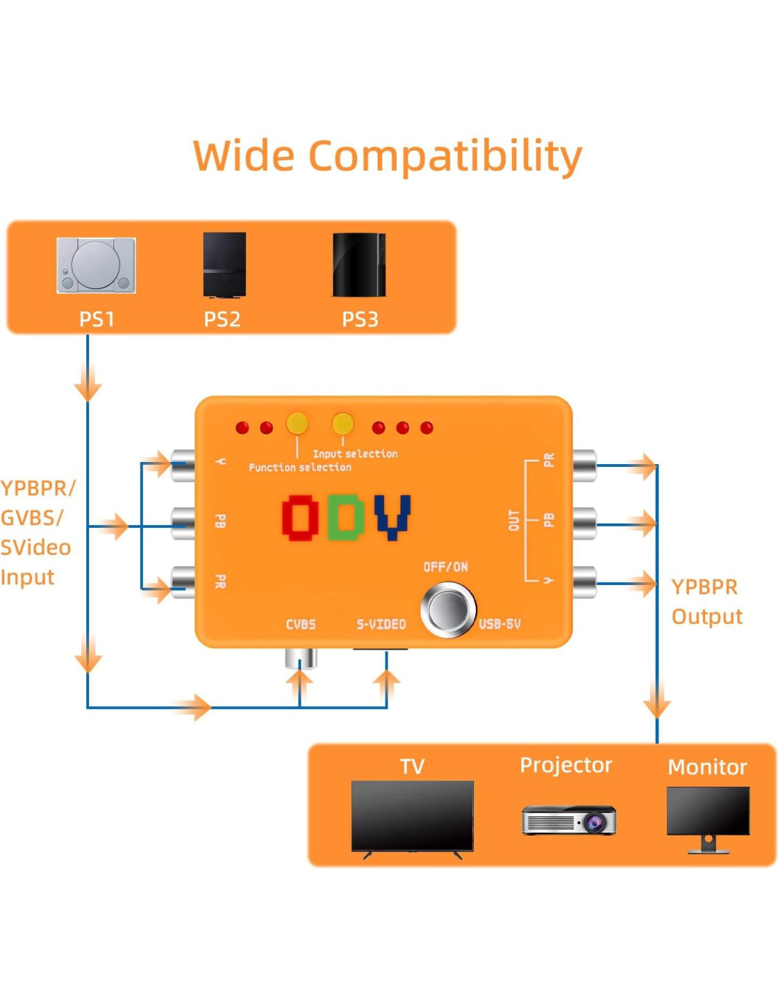 - Diseñado para OSSC y Juegos Retro: Ideal para usuarios de consolas retro; añade soporte de entrada S-Video y AV a OSSC, tarjetas de captura, CRT y otras pantallas con entradas de componente.