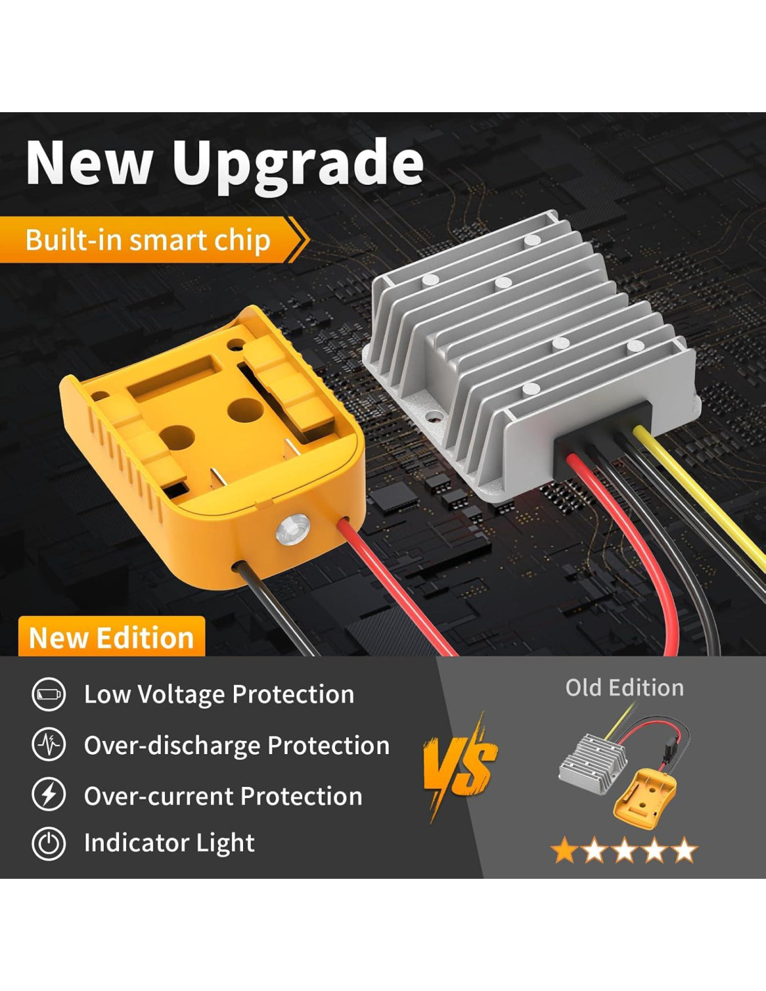 - Excelente Rendimiento: La carcasa del convertidor de voltaje de 12V está hecha de aleación de aluminio, impermeable, a prueba de óxido, a prueba de golpes, con buen rendimiento de disipación de calor. Y el convertidor de batería está hecho de material ABS de alta calidad, el cable es 12AWG, y está equipado con terminales, lo que es más seguro y conveniente de usar