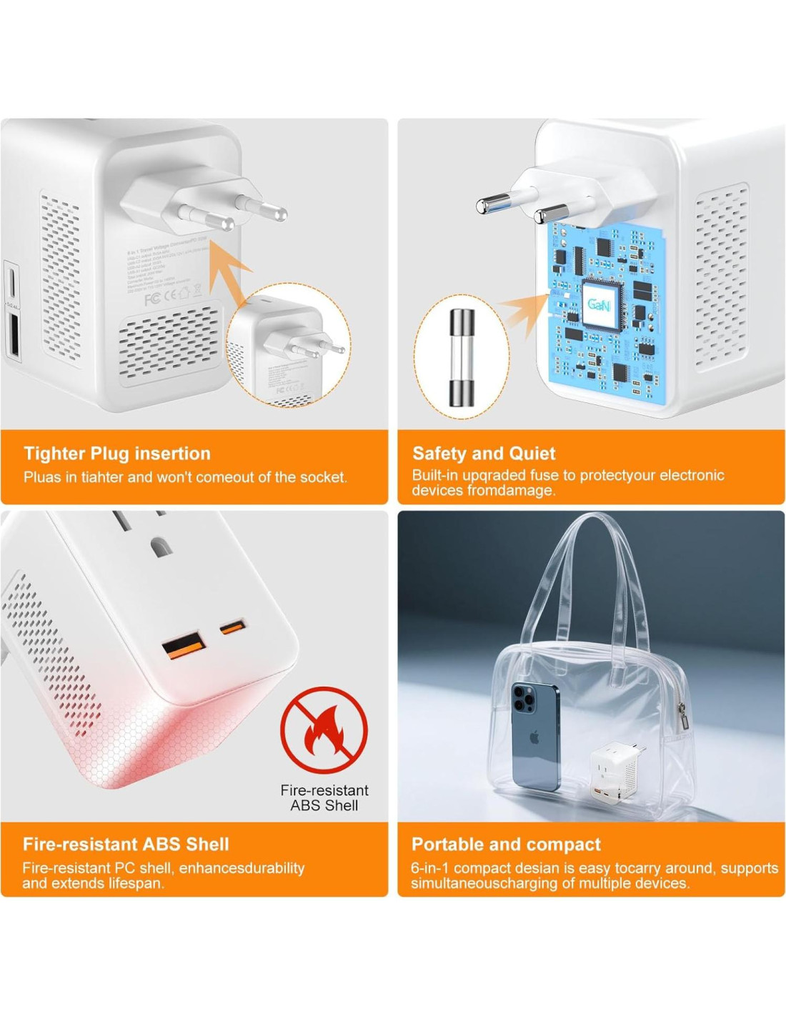 - Diseño de Conversión de Viaje Mejorado: Convertidor de Voltaje Universal 6-en-1, nuestro convertidor reconocerá automáticamente y proporcionará carga rápida PD 20W, ¡dándote libertad de carga rápida!