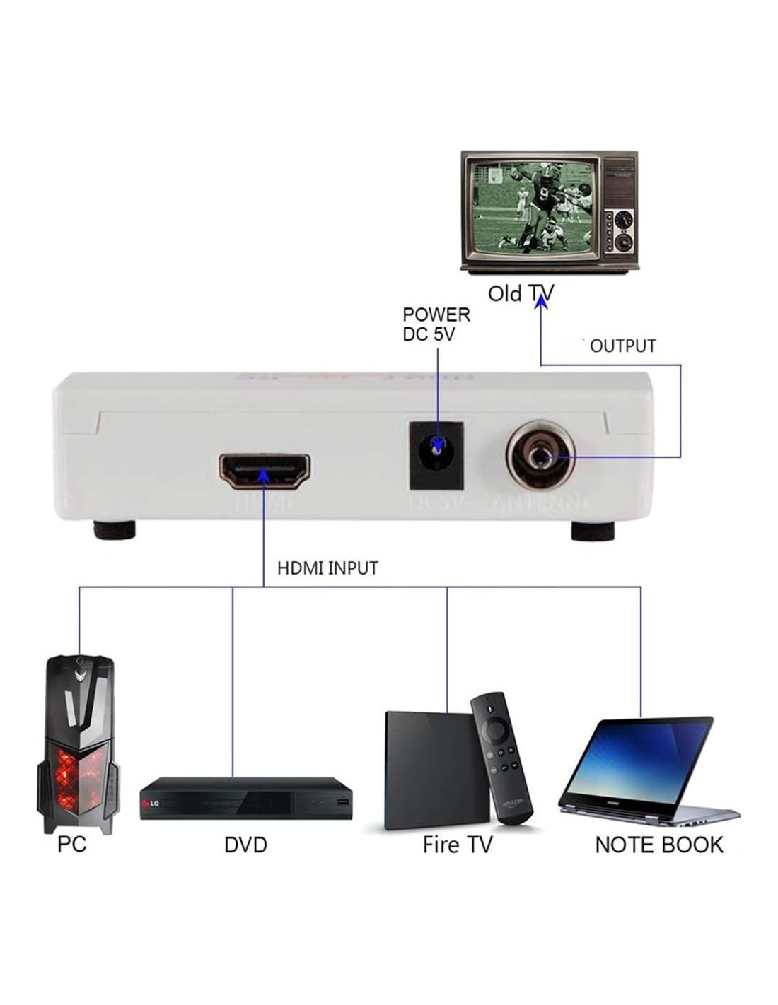 - El convertidor HDMI a RF conectará tus reproductores de medios en streaming (Apple TV, Amazon Fire Stick, Fire TV, Roku, etc.), consolas de juegos (PS3, PS4, PS5, Xbox 360, Xbox One, etc.), DVD, reproductores Blu-ray, VCR, Laptop, PC o computadora, etc. componentes más nuevos con HDMI a equipos de video o TV más antiguos; Luego podrás ver videos / jugar juegos / compartir fotos antiguas en el canal 3 en modelos de TV antiguos (CRT) y otros dispositivos que no tienen HDMI.