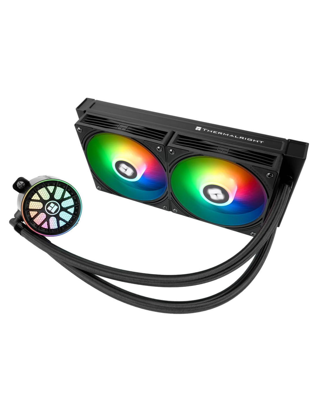 - [Cabeza de Bomba Colorida Redonda] La cabeza de bomba fría redonda en vórtice adopta la estructura exclusiva de la bomba de agua de cuarta generación, el diseño en vórtice y el halo ARGB bajo el logotipo luminoso, creando una experiencia visual colorida y única, y la velocidad de la bomba puede alcanzar 2800RPM+/-10%, lo que puede disipar efectivamente el calor