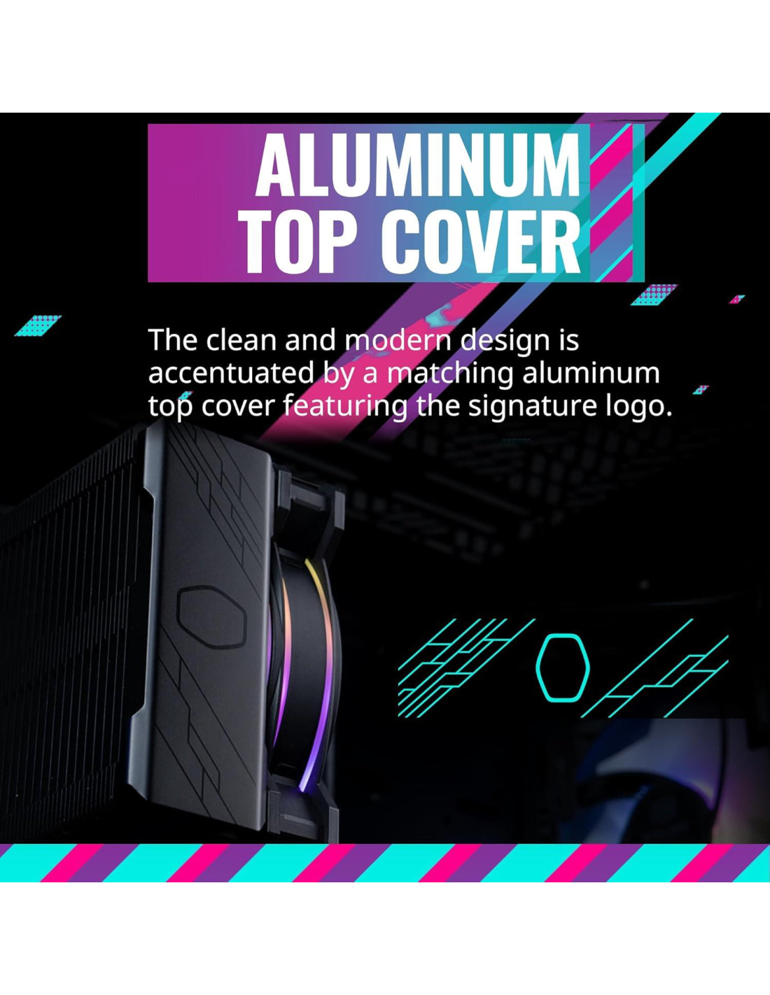 Cooler Master está relanzando su enfriador de aire más aclamado con el nuevo Hyper 212 Halo Negro. Diseño de cubierta superior de aluminio completamente negro, con el nuevo ventilador Halo que ofrece un impresionante ARGB de doble bucle y un rendimiento mejorado respecto a su predecesor. Los tubos de calor recubiertos de negro mantienen una conductividad de calor sin obstáculos con un impresionante acabado negro. El enfriador tiene 154mm de altura, lo que permite una amplia gama de compatibilidad. Los soportes de instalación te brindan versatilidad para las últimas plataformas en el mercado.