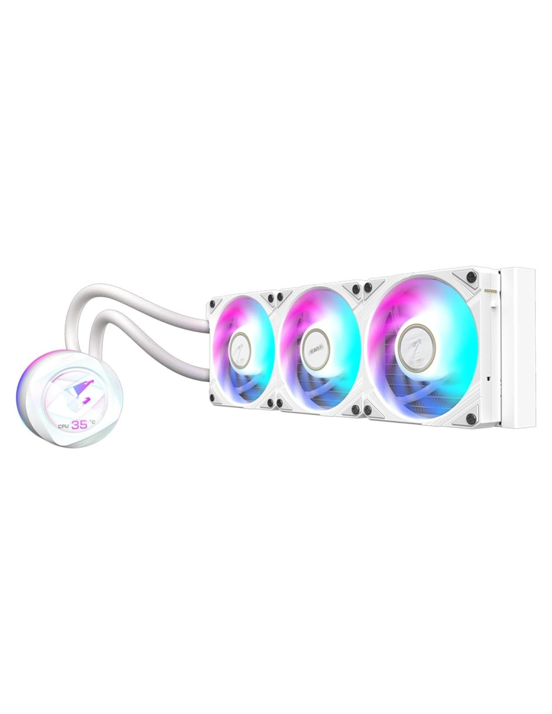 Experimenta el alto rendimiento del AORUS WATERFORCE X II 360 ICE todo en uno. El AORUS WATERFORCE X II 360 ICE disipará de manera eficiente y silenciosa el calor de tu CPU de alta gama. El AORUS WATERFORCE X II 360 ICE es completamente personalizable con tu configuración, presentando una pantalla LCD de 60x60mm con soporte para video y texto.