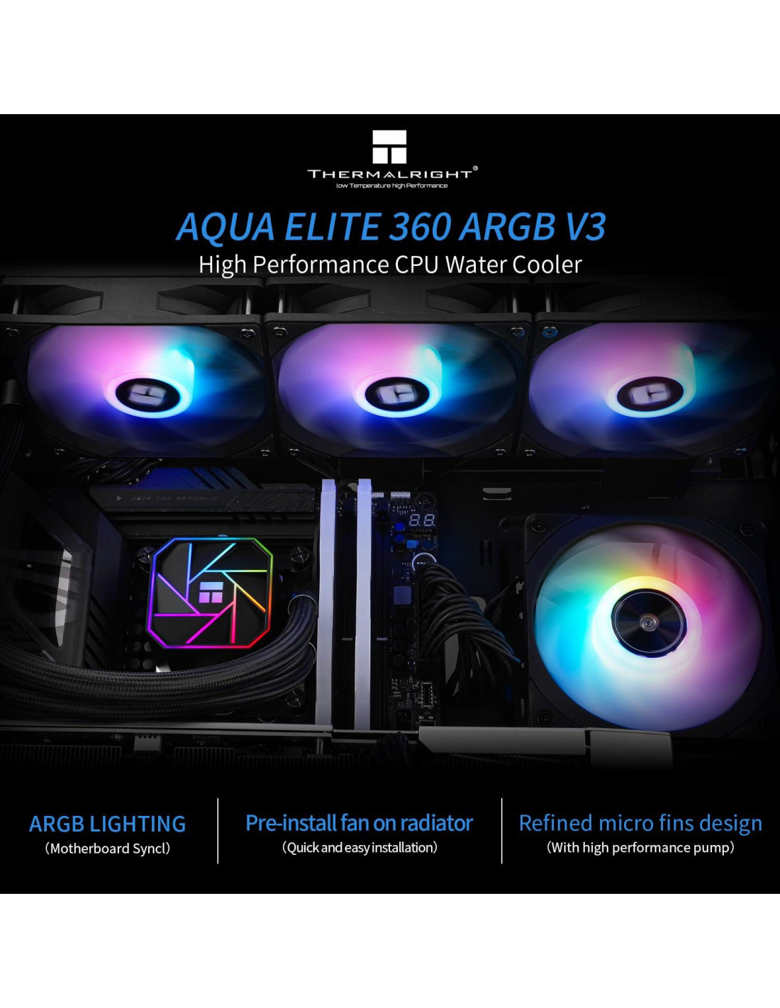 - Mejor Enfriamiento El enfriador adopta la cuarta generación de cabezal de bomba + tamaño de fila fría de 360 placas de disipador de calor de aluminio negro + manguera de agua de preparación protectora + configuración estándar de ventilador ARGB de 120 mm, para crear una unidad de enfriador de agua de una sola pieza de baja vibración, alta disipación de calor, baja evaporación, alta vida útil.
