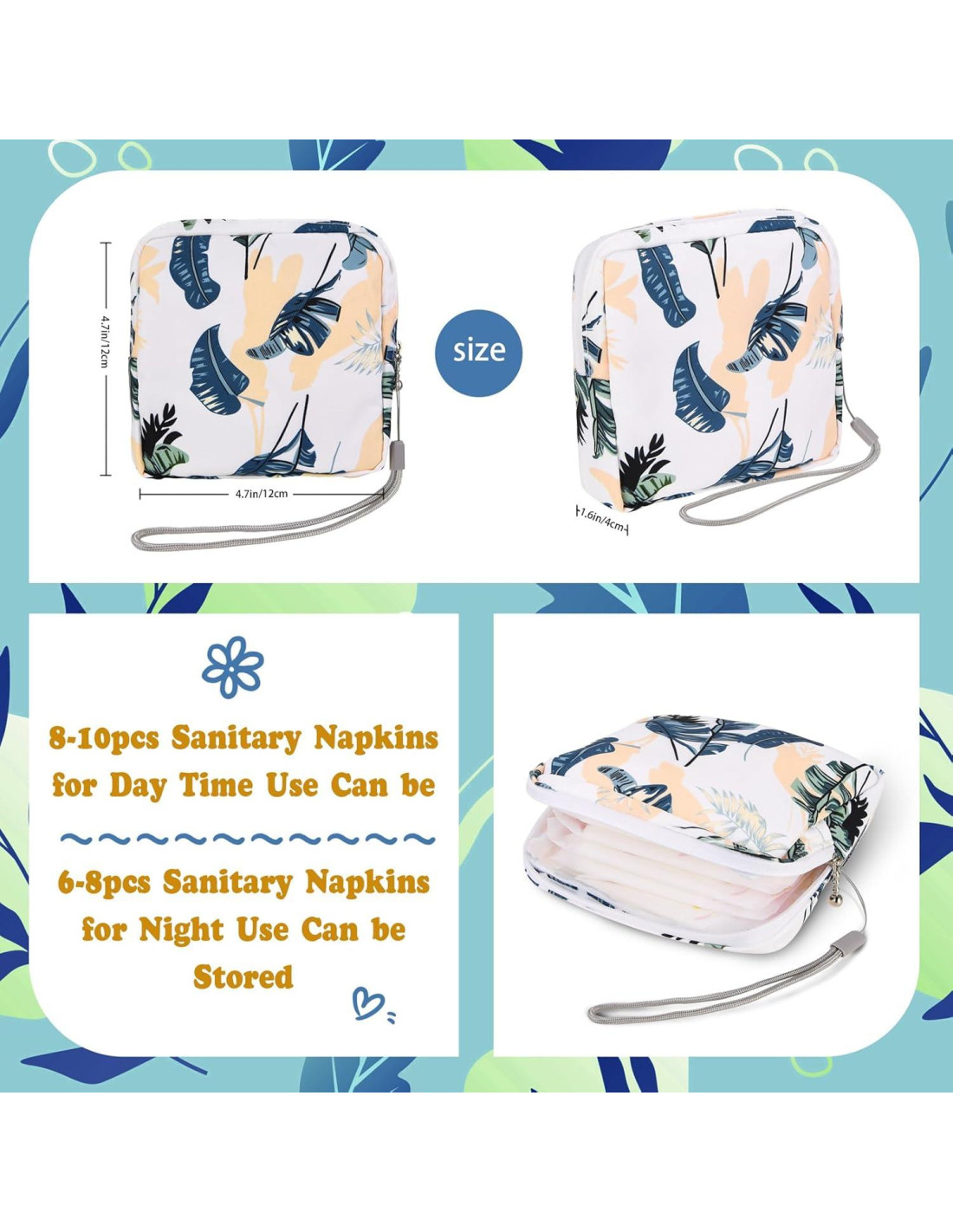 - Diseños considerados El tamaño de la bolsa para toallas menstruales es 12.9 x 12.9 x 4.6 cm, puede contener de 8 a 10 piezas de toallas sanitarias de tamaño normal. El diseño del compartimento dentro de la bolsa para almohadillas menstruales es fácil de almacenar tampones y mantenerlos limpios y ordenados. Se puede poner fácilmente en tu mochila o bolso en la escuela protegiendo tu privacidad.