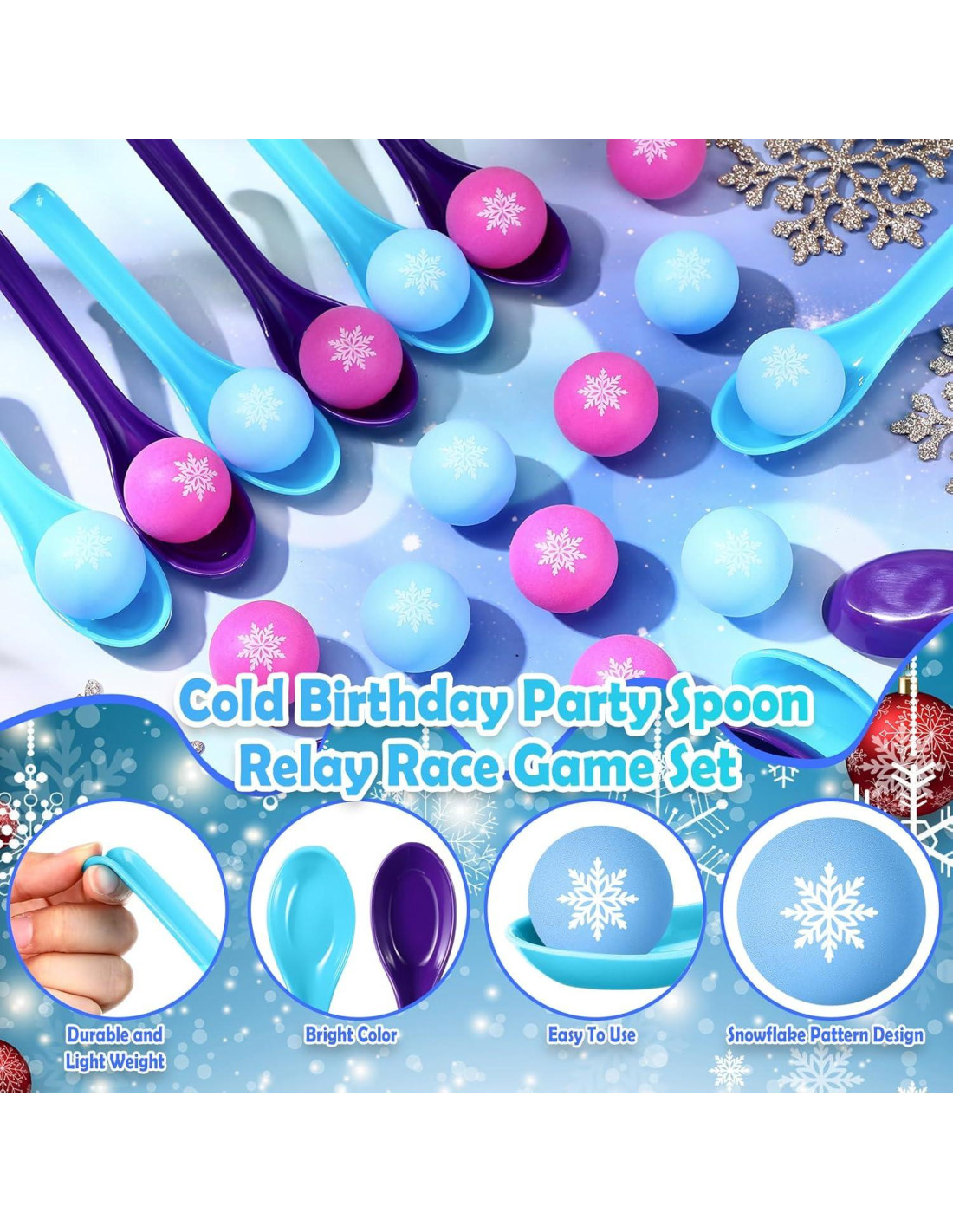- Diseño Interesante: el set de juguete de carrera de cucharas de fiesta de hielo y nieve es fácil de jugar, puedes simplemente equilibrar la bola en la cuchara mientras corren hacia la línea de meta para proporcionar una experiencia de juego intensa y directa, el set también puede acomodar obstáculos adicionales para aumentar el nivel de dificultad del juego, añadiendo emoción extra a tu fiesta