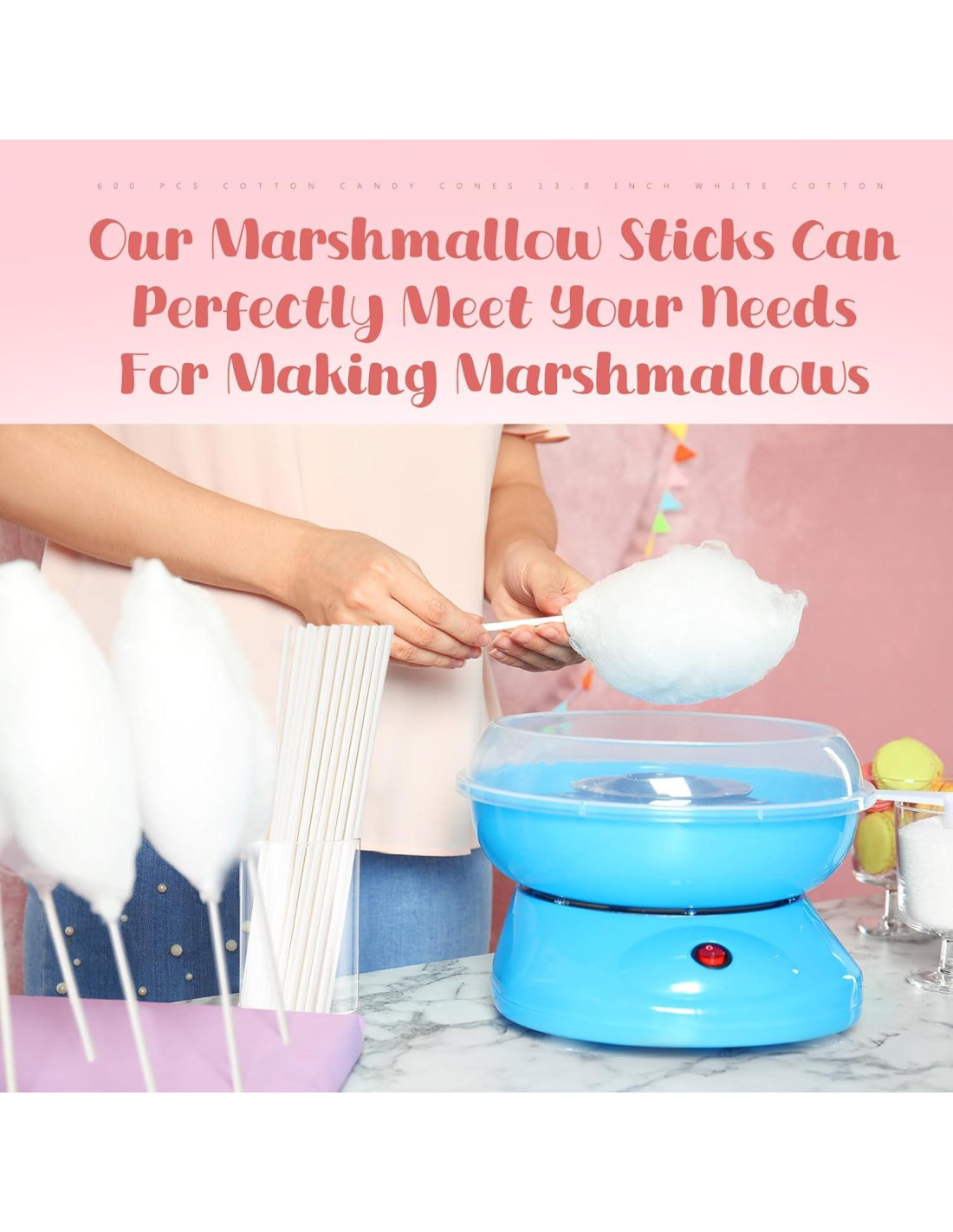 - Paquete Incluido: obtienes un paquete de 600 palitos de malvavisco blancos; Son suministros para máquinas de algodón de azúcar para experiencias divertidas de fabricación de malvavisco con tu familia y amigos
