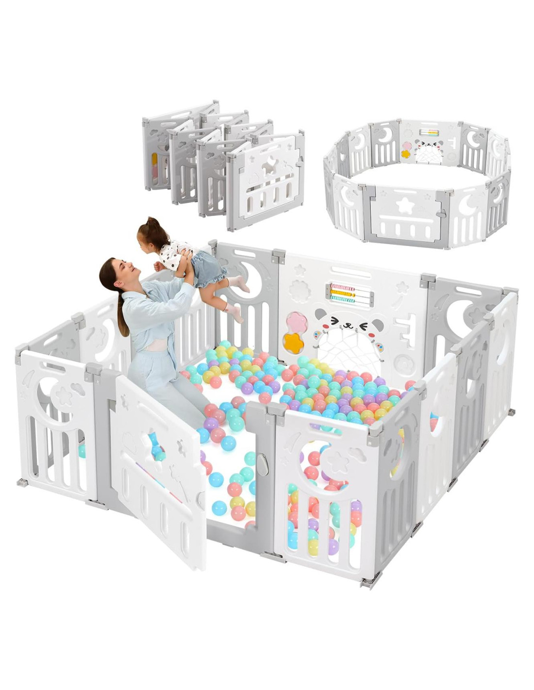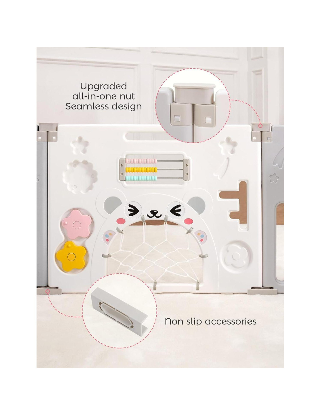 - DISEÑO EDUCATIVO LLENO DE DIVERSIÓN Ideal para niños de 1 a 3 años, esta área de juego con valla para bebés cuenta con una pared de actividades con juguetes de rompecabezas educativos, incluyendo un divertido ábaco, coloridos engranajes giratorios, adorables calcomanías de gatos y una mini portería de fútbol, para estimular el desarrollo cerebral del bebé y fomentar el juego independiente