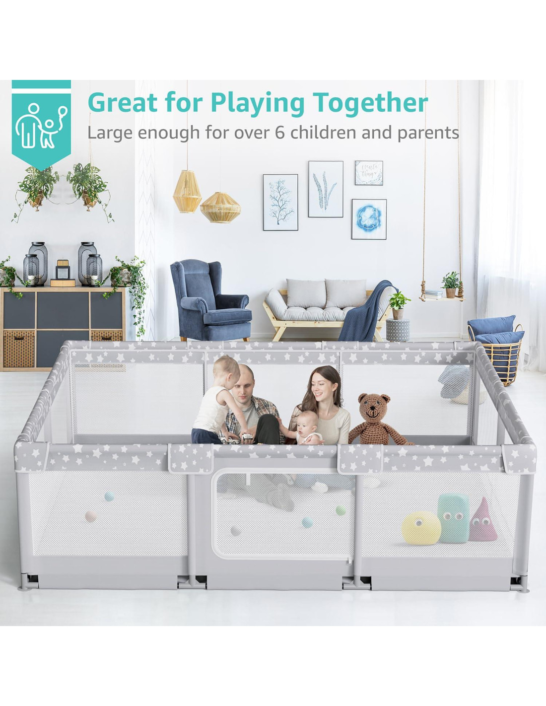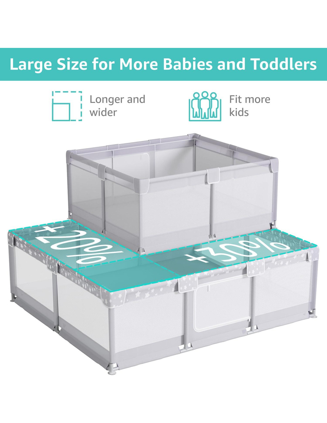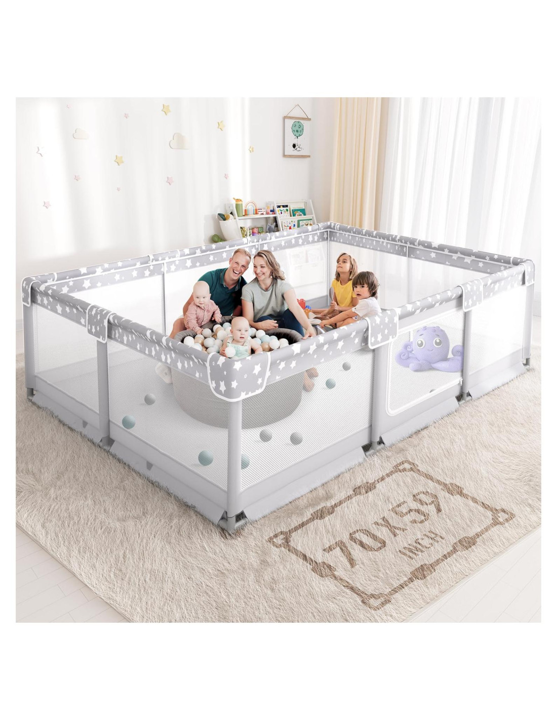 - Gran Corralito: DIMENSIONES TOTALES: 179.4cm(L) x 149.9cm(W) x 68.6cm(H). Ideal para diversión familiar, lo suficientemente espacioso para acomodar cómodamente a más de 6 niños y padres jugando juntos.