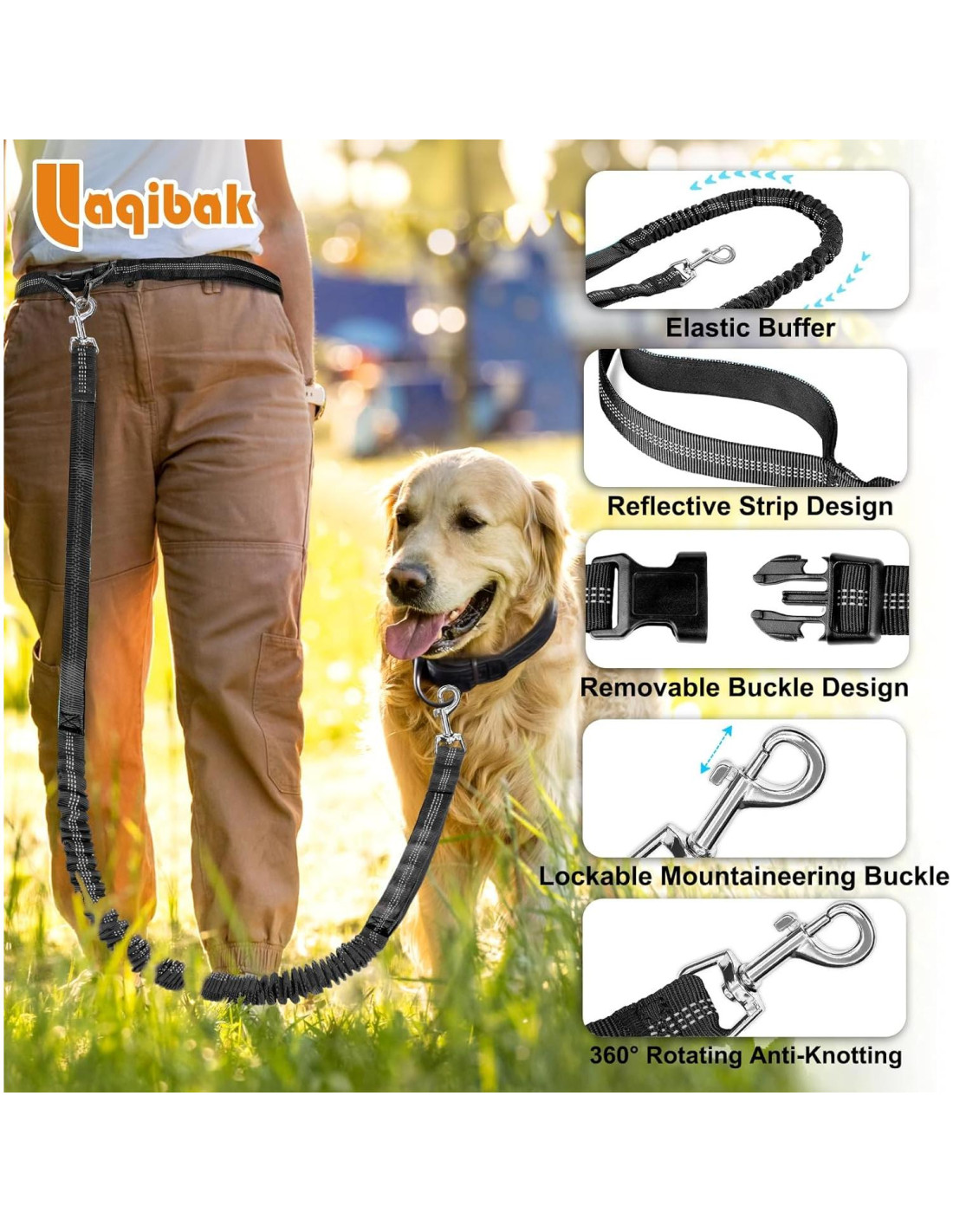 - [Perfecta para Todos los Tamaños de Perros] La correa para perros manos libres Laqibak es adecuada para perros pequeños/medianos/grandes. El diseño de la correa de perro bungee puede amortiguar bien el impacto causado por la fuerte fuerza de tirón del perro, y puede reducir bien el estrés y el daño muscular para ti y el perro.