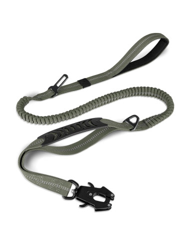- Correa Bungee Absorbente de Choque: Esta correa bungee para perros permite justo la longitud suficiente para que el perro deambule y explore mientras caminamos, pero no tanto como para que la correa arrastre por el suelo. El diseño elástico de la correa realmente absorbe el tirón de perros grandes y enérgicos sin tirar de tu muñeca y hombro. Tiene una buena elasticidad para aliviar la presión tanto para el dueño como para los perros, haciendo que tus paseos sean mucho más agradables.