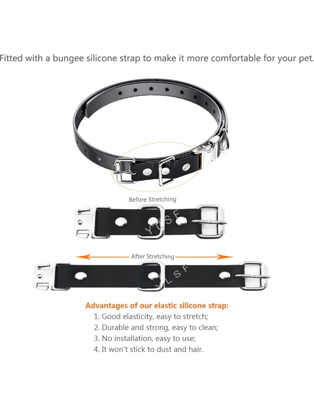 - Es el collar de reemplazo bungee que estás buscando, que se bloquea y desbloquea rápidamente. Ventajas de nuestra correa de collar elástica: 1. Buena elasticidad, fácil de estirar; 2. Duradero y fuerte, fácil de limpiar; 3. Sin instalación, fácil de usar; 4. No se adhiere al polvo y al pelo; 5. La hebilla de liberación lateral rápida lo hace más conveniente para ti, está hecha de metal de aleación de zinc y resistente a la corrosión.