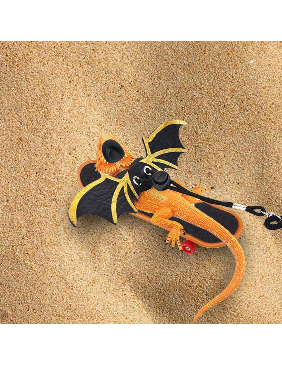 - Lo que obtienes: Recibirás 3 arneses de diferentes tamaños, 1 correa para dragón barbudo, 2 mini sombreros negros y rojos, y 1 mini patinete, una combinación perfecta para anfibios y otros animales de compañía pequeños.